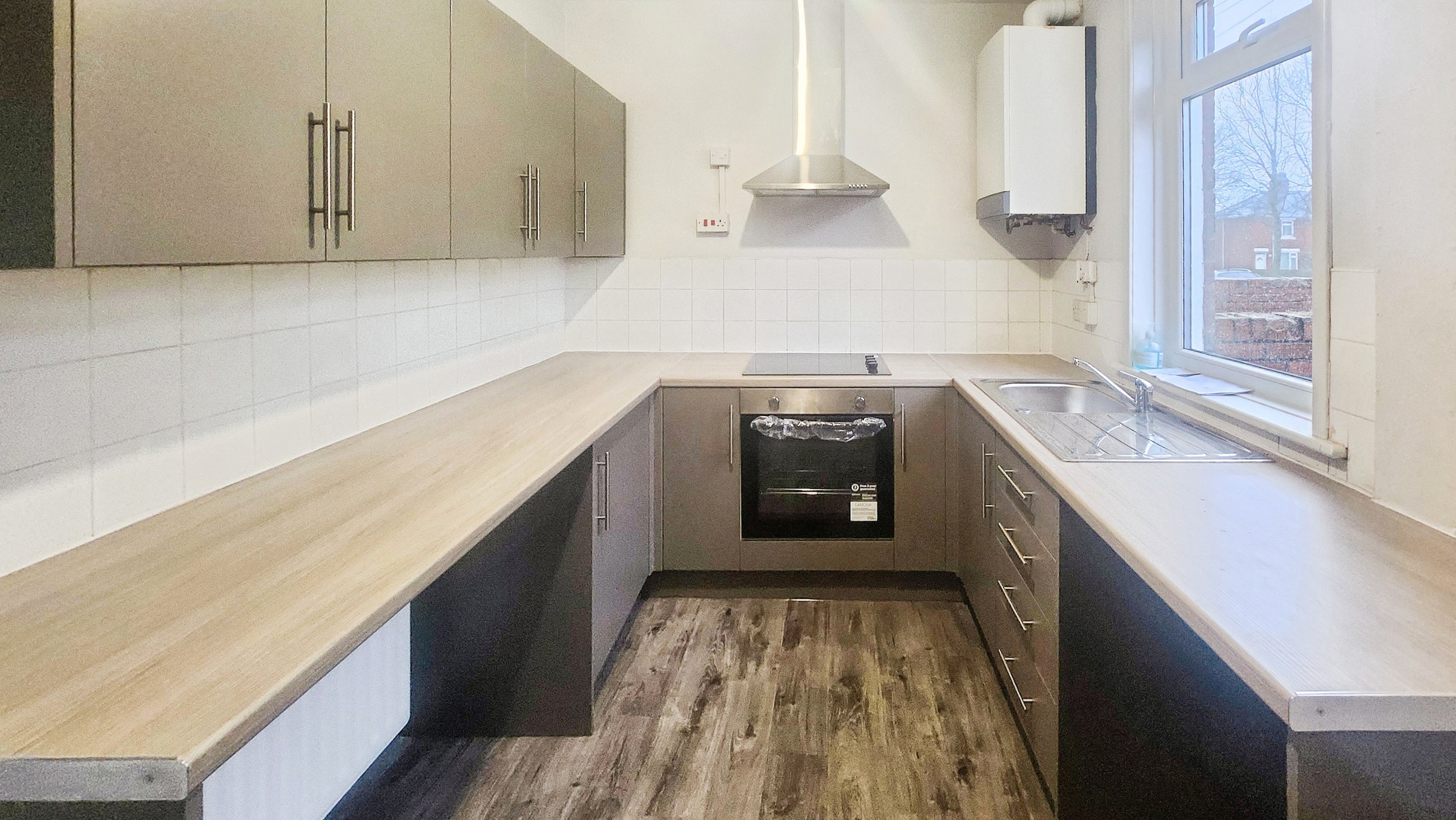 The heart of the home is the stylish new kitchen, fitted with sleek contemporary units and quality worktops. A brand new oven and extractor are in place, making it ideal for anyone who enjoys cooking or entertaining. There is ample storage and preparation space, ensuring the kitchen is as practical as it is attractive.