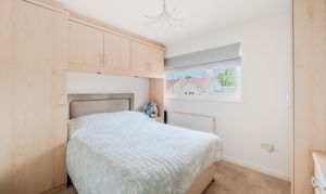 The second bedroom is also a comfortable double, with fitted wardrobes, drawers, and overbed units whilst bedroom three provides further flexibility, ideal as a guest room or study, with a built-in airing cupboard.
