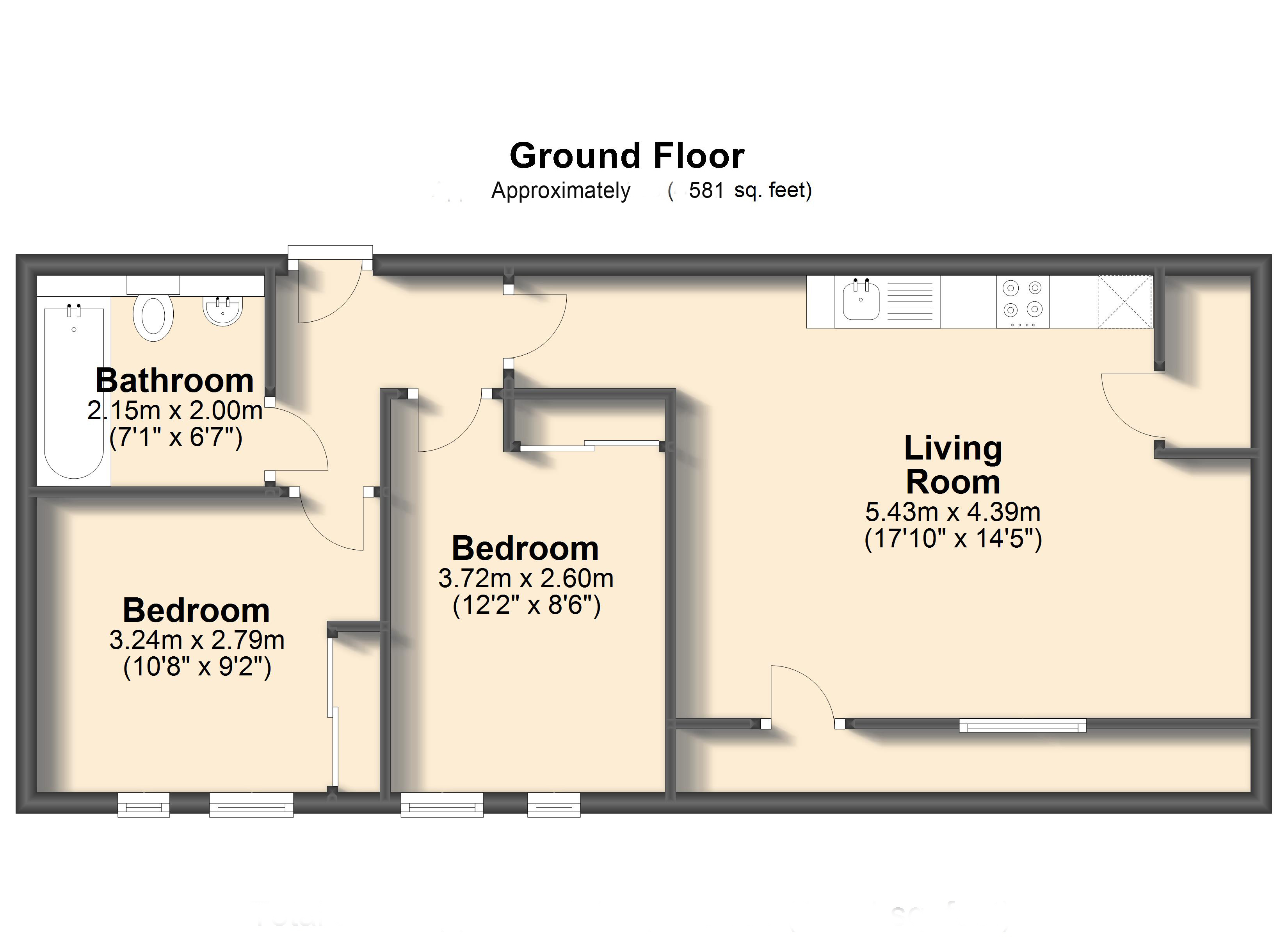 - Approx Sq Feet: 581 sqft