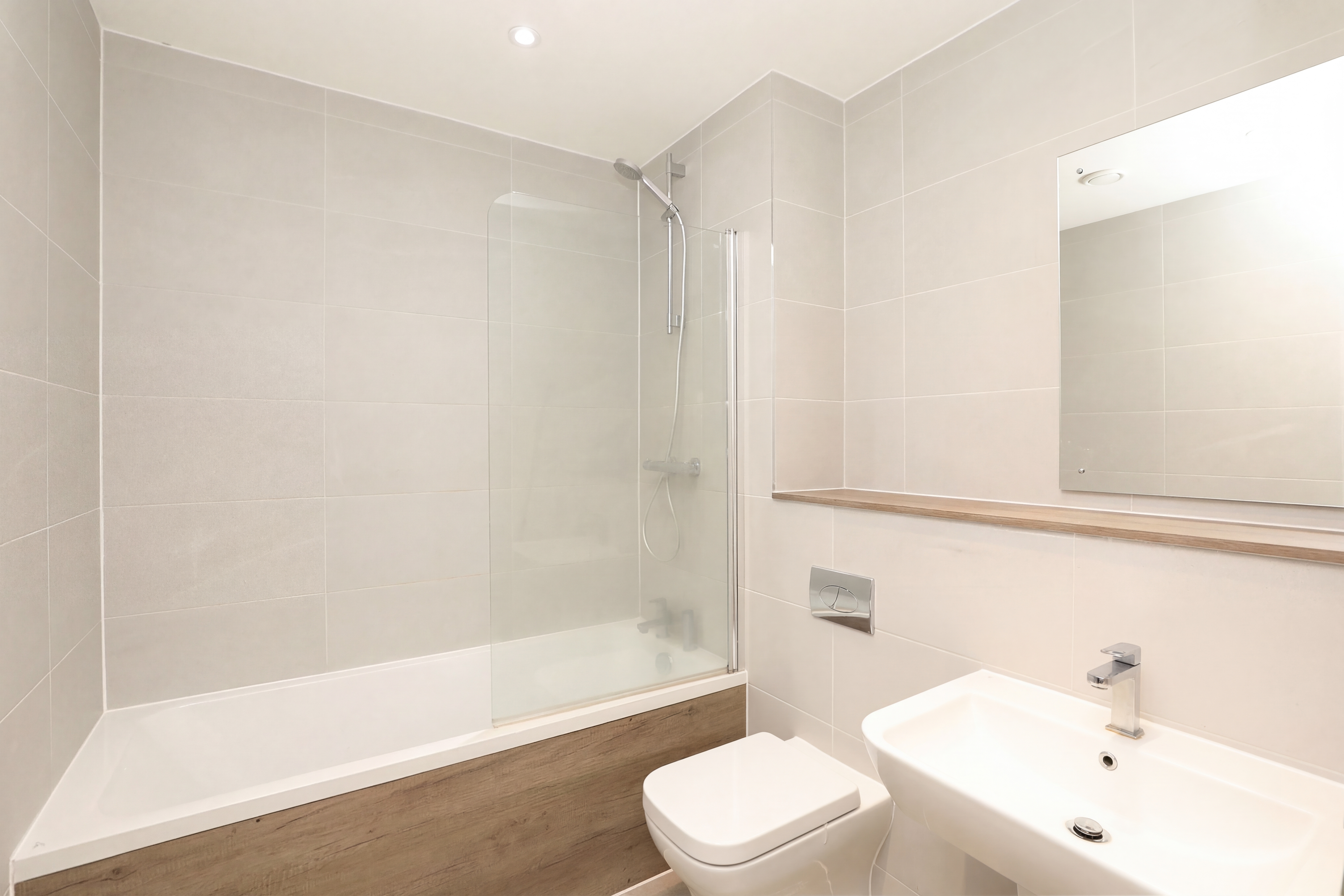 - Sleek Fully Tiled Bathroom With Porcelanosa Fittings