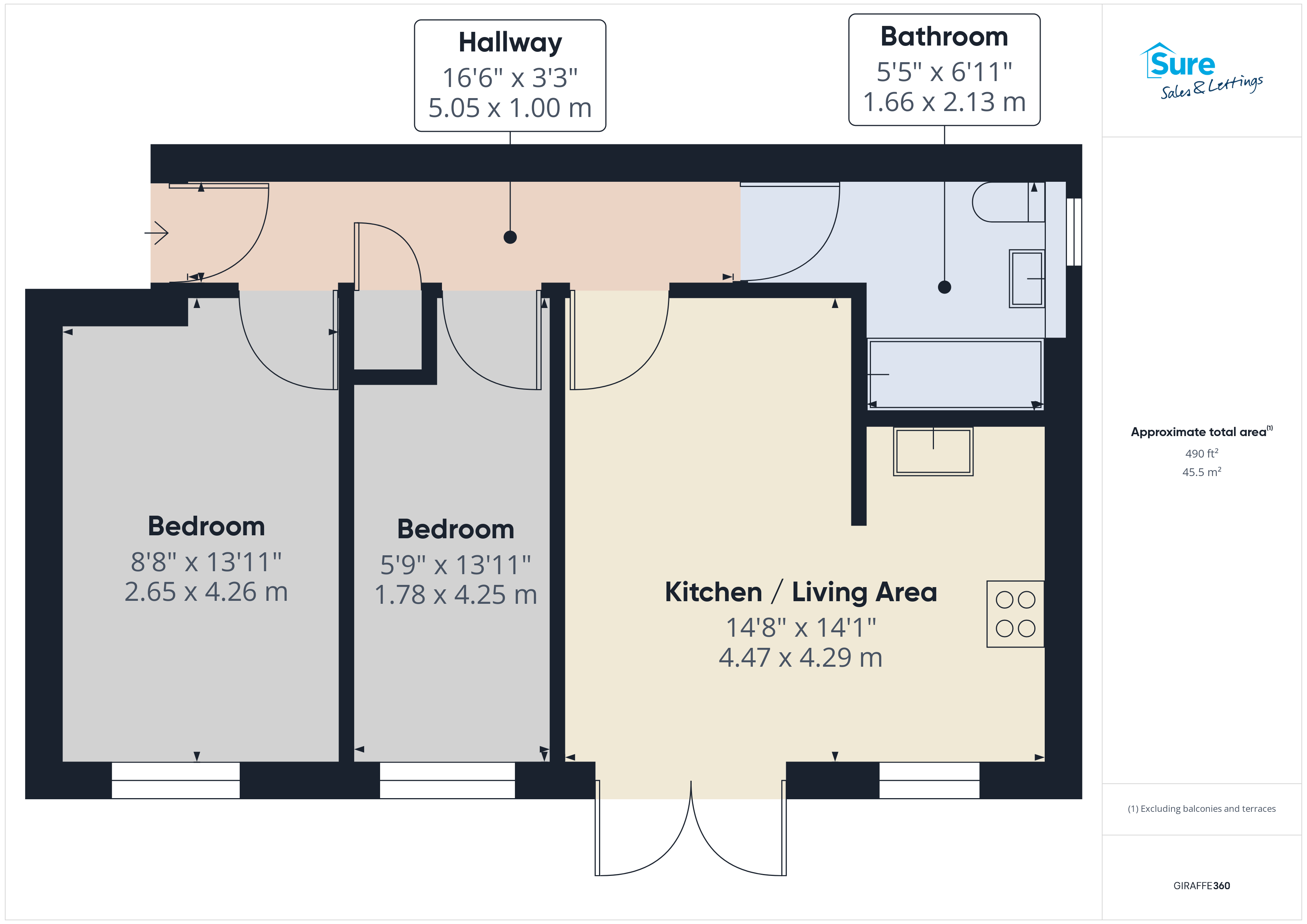 Accessed via a secure communal entrance, you’ll find the property situated on the ground floor. The hallway leads to the first bedroom on the right, offering ample space and a wardrobe for additional storage. The second bedroom is positioned further along the hallway.