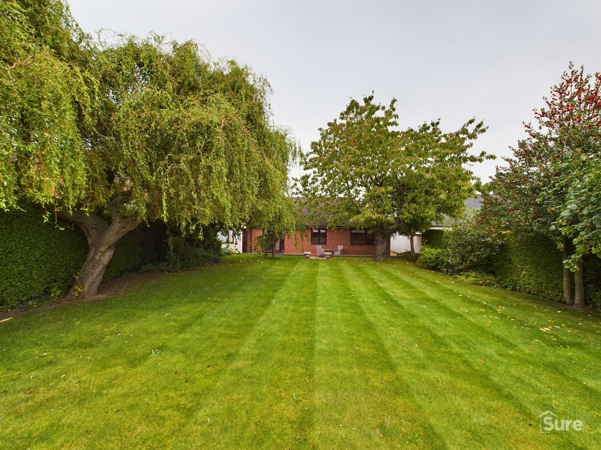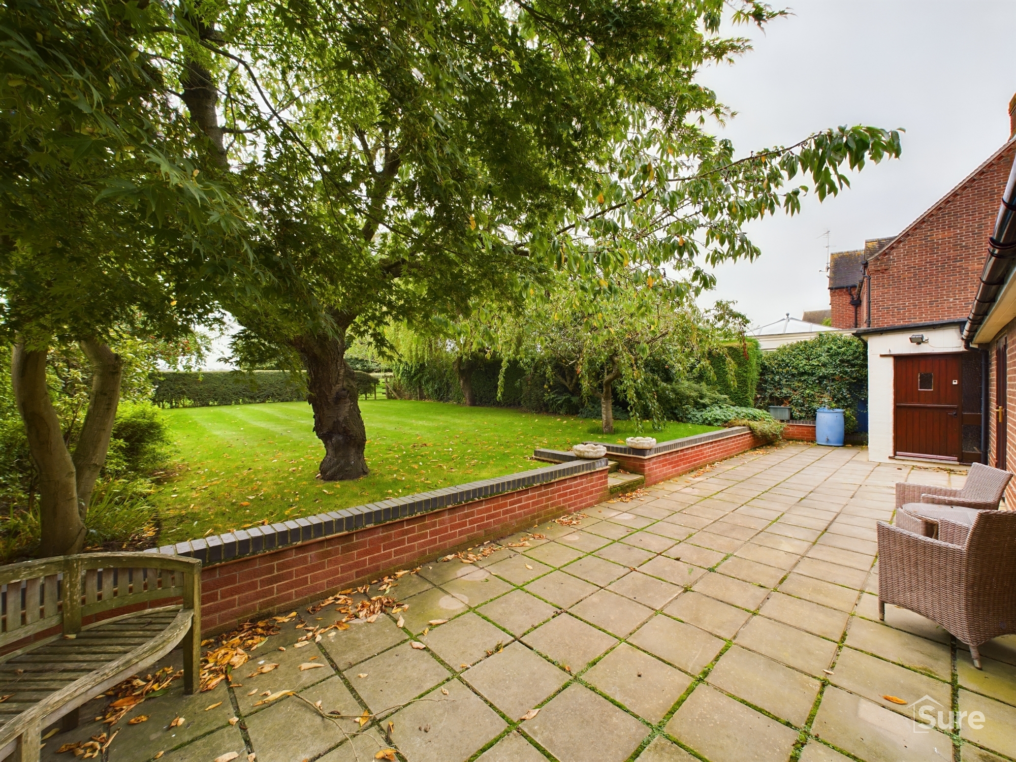 Externally, the bungalow sits on a lovely plot with well-maintained gardens to the front and rear. The rear garden is a particular feature, enjoying a full-width patio, established hedged boundaries and a variety of fruit trees. There is ample off-road parking for several vehicles along with an internal garage, and the landlord is also happy to include a gardener as part of the tenancy if required.
