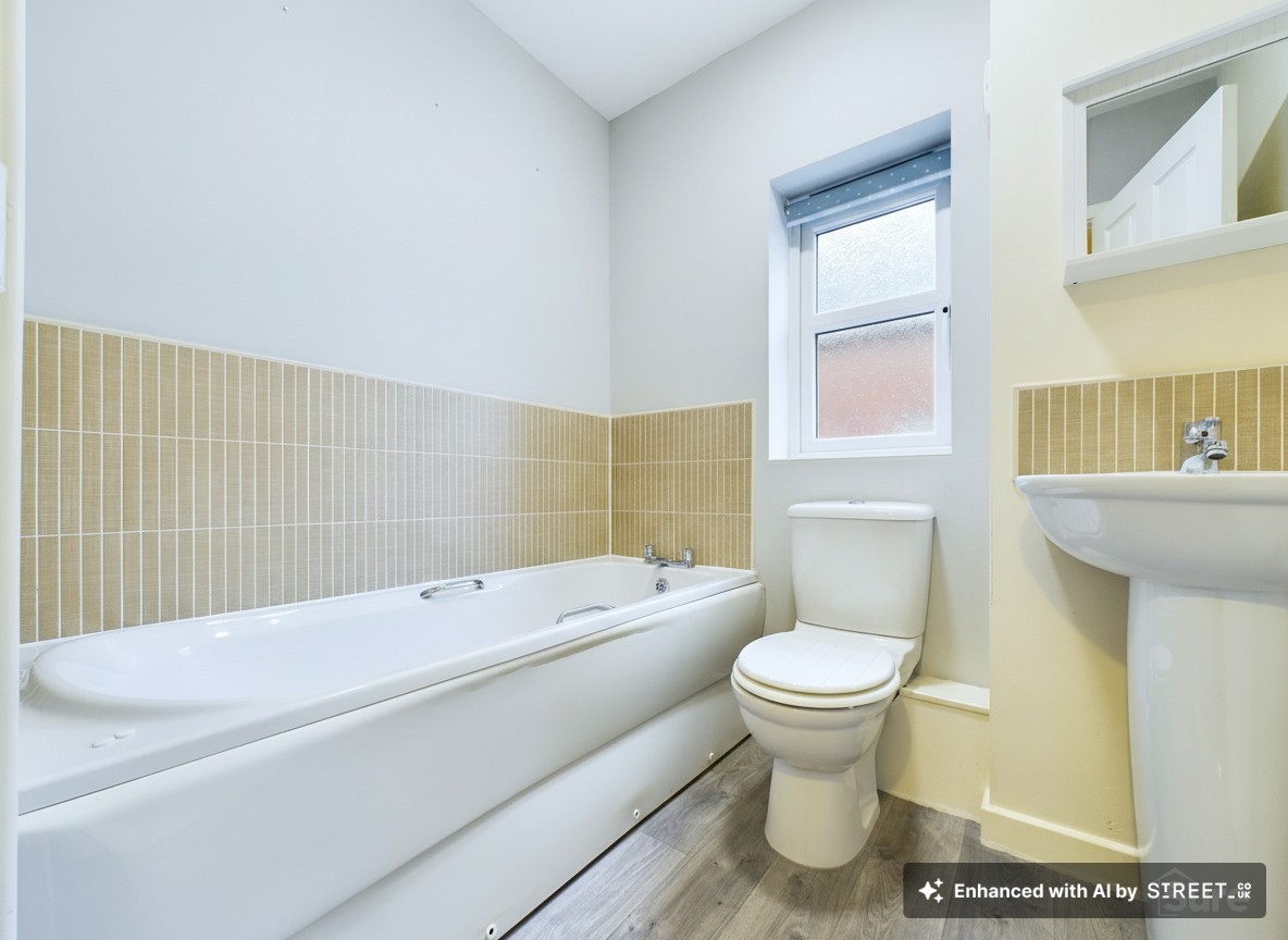 Window to rear. Having a three piece suite comprising of bath, pedestal wash hand basin and low level WC, radiator.