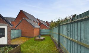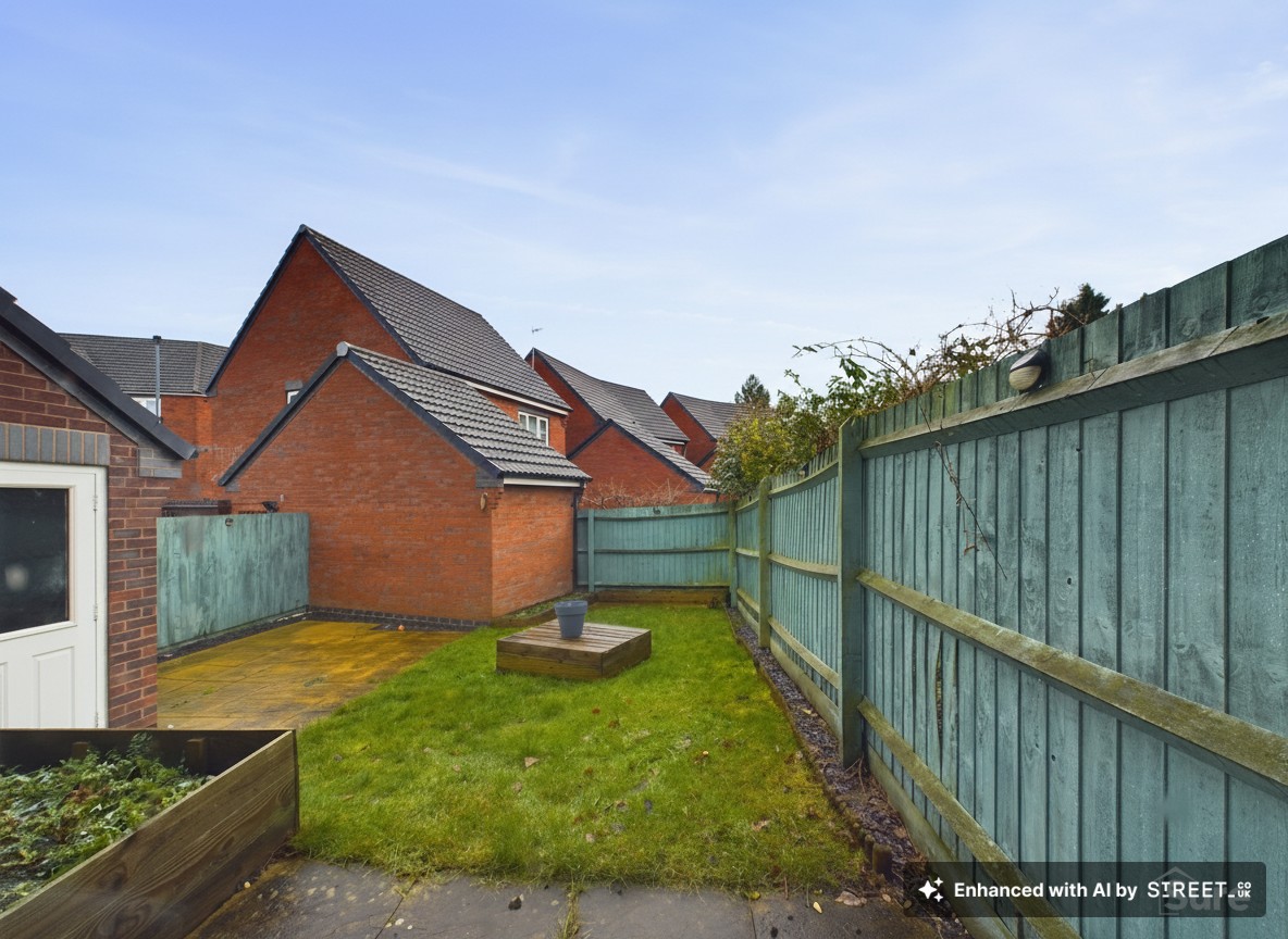 Enclosed rear garden incorporating a paved patio area with lawn garden and raised flower beds. Gated access to the driveway.