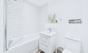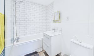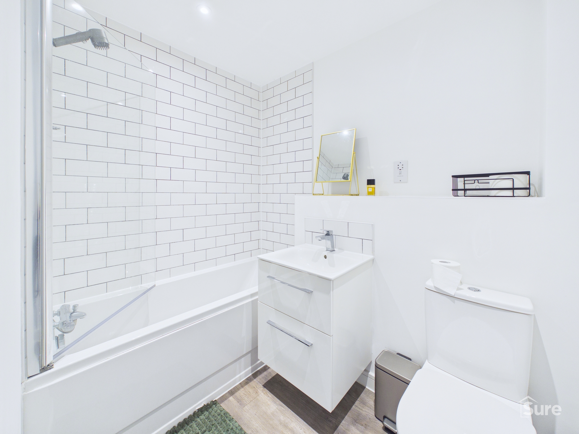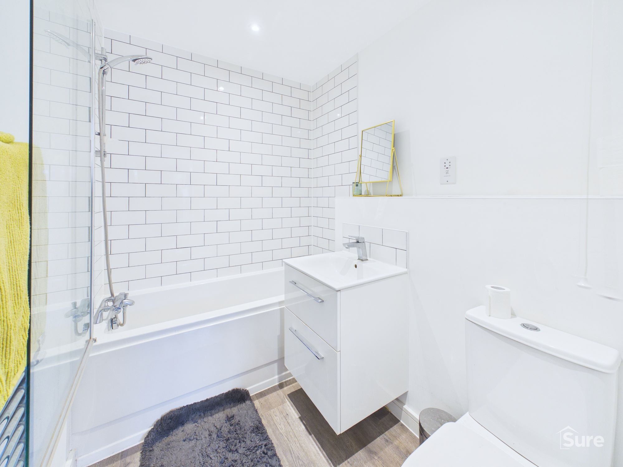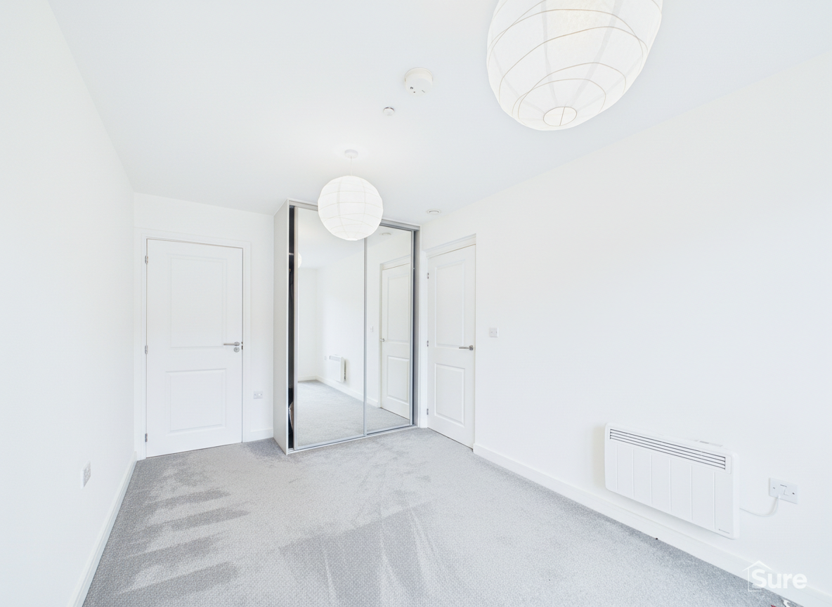 The apartment benefits from two well-proportioned double bedrooms. The principal bedroom features its own en-suite shower room, while the second bedroom is served by a Jack and Jill style bathroom, complete with bath, wash hand basin and low-level WC, offering convenience and privacy for occupants.