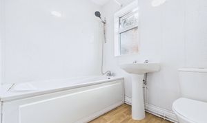 Upstairs, the property features three well-proportioned bedrooms, each suitable for a double bed. The family bathroom is fitted with a three-piece suite including a shower over bath, wash hand basin, and low-level WC.