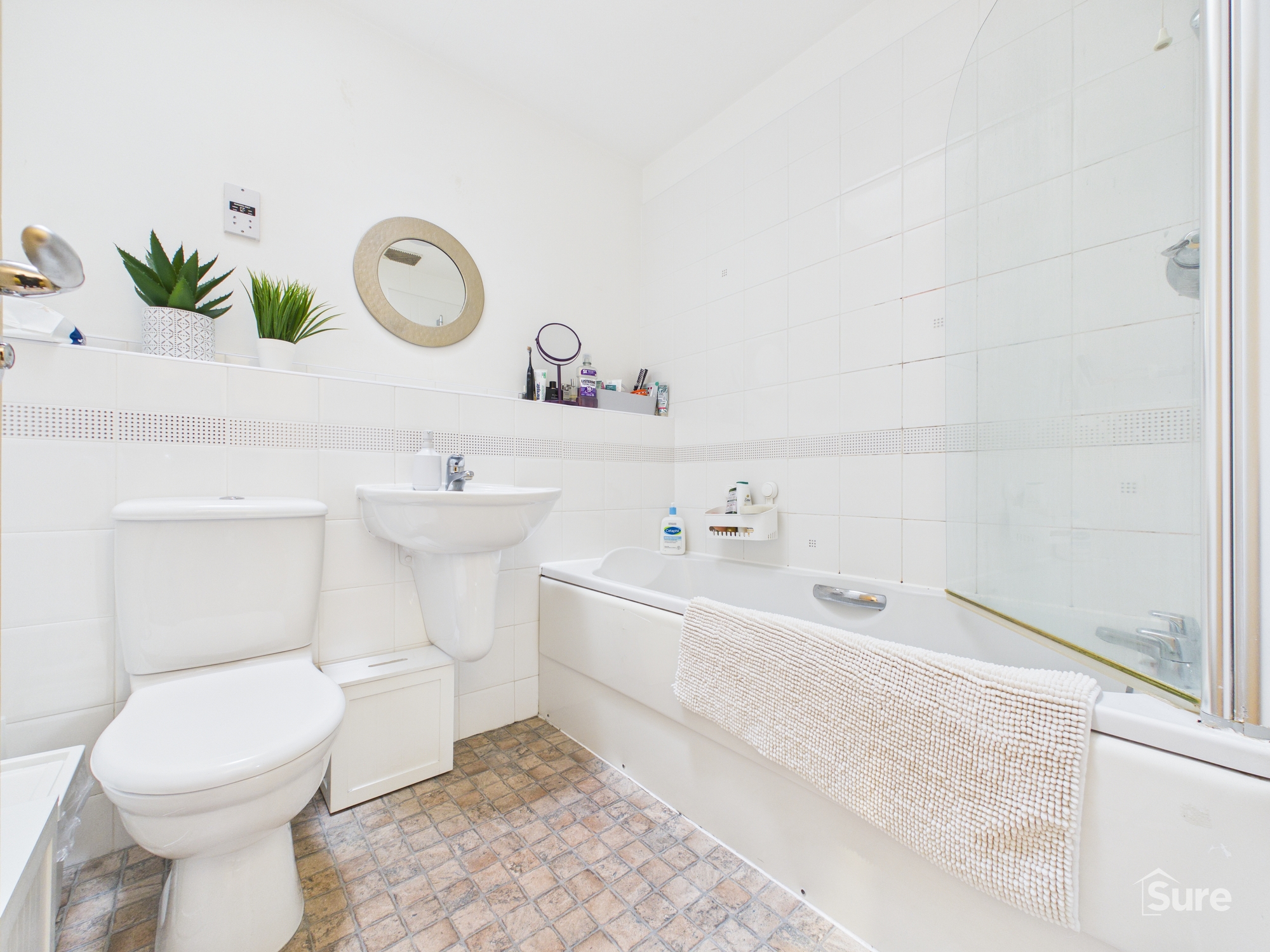 Having a three piece suite including bath with shower over and glass screen. wash hand basin and low level WC.