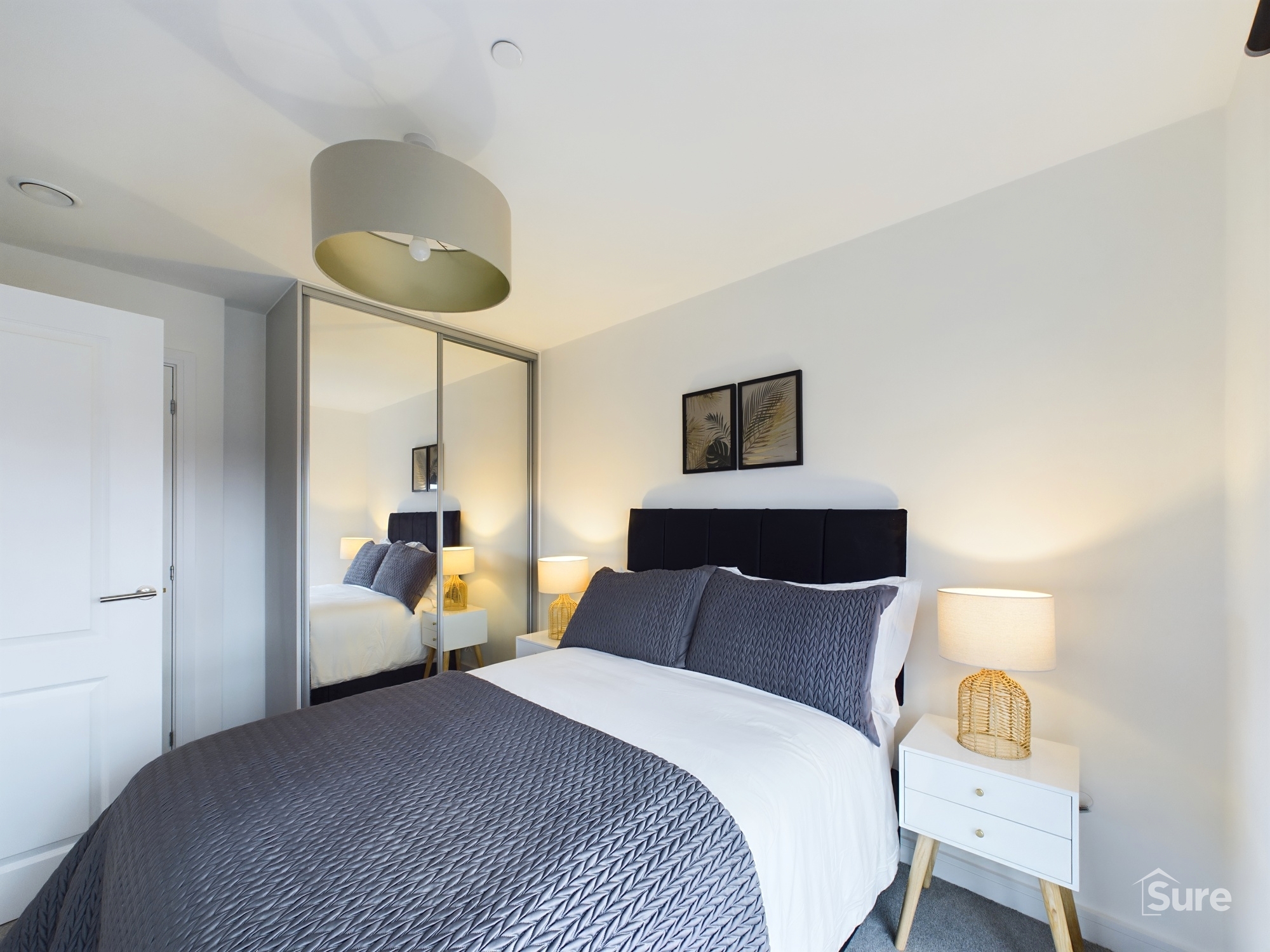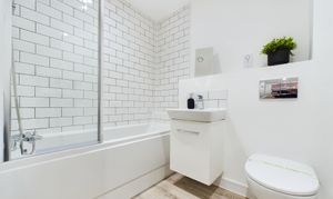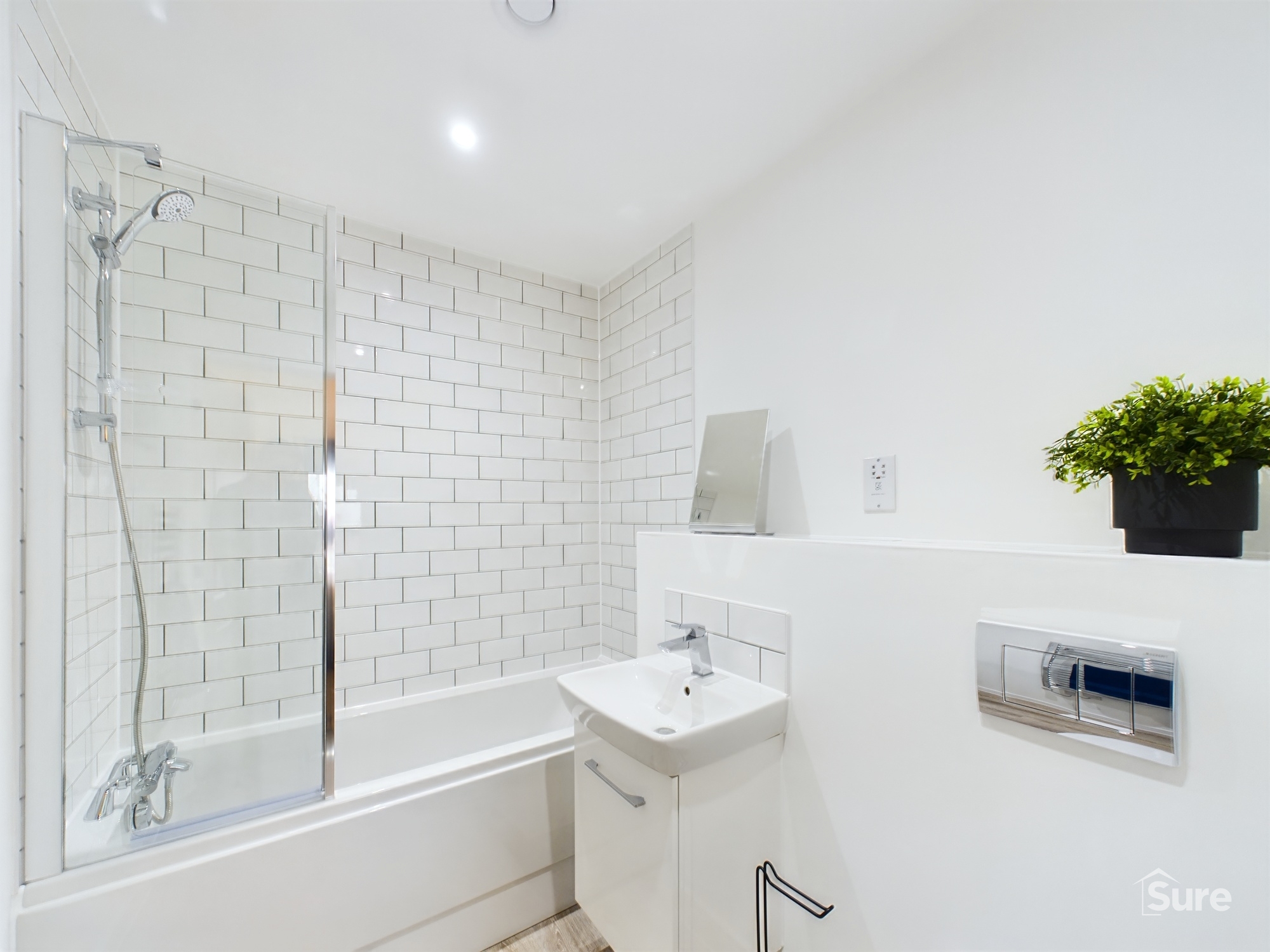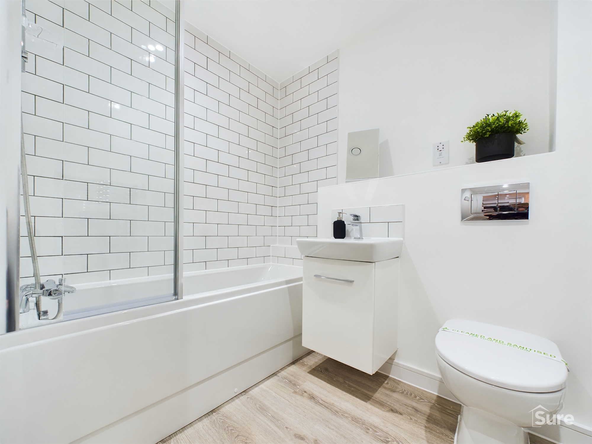 The apartment further offers a contemporary main bathroom, finished with a white three-piece suite and chrome fittings.