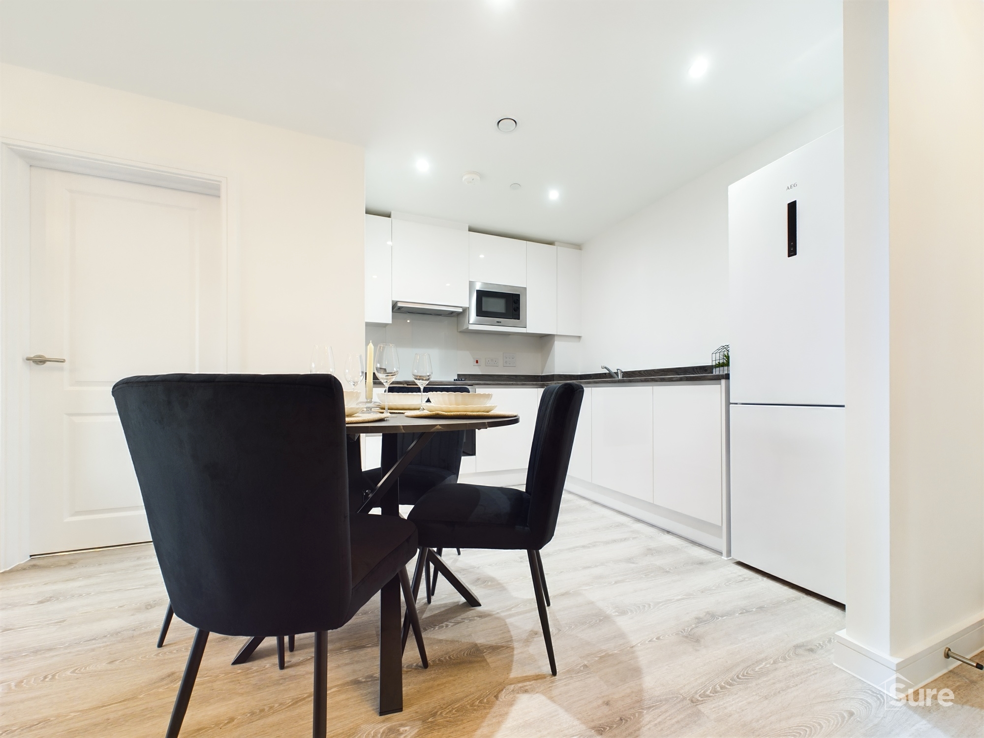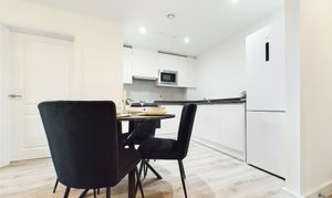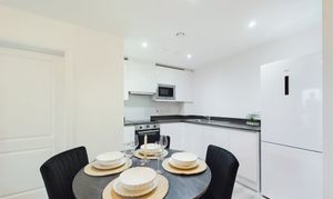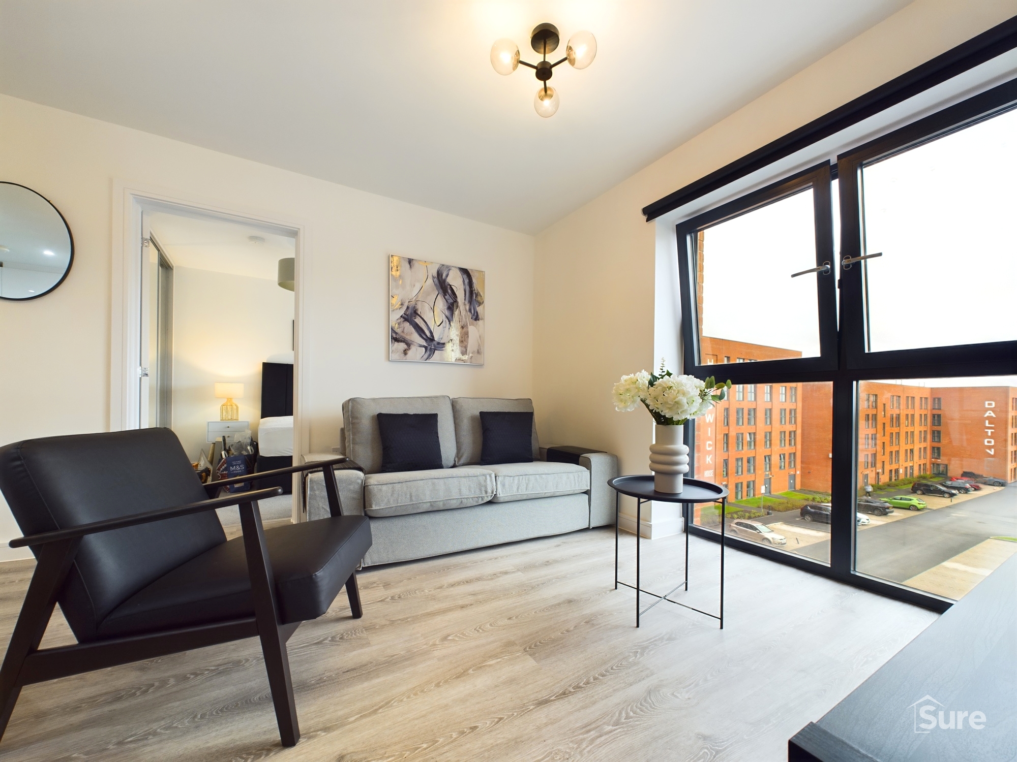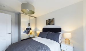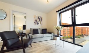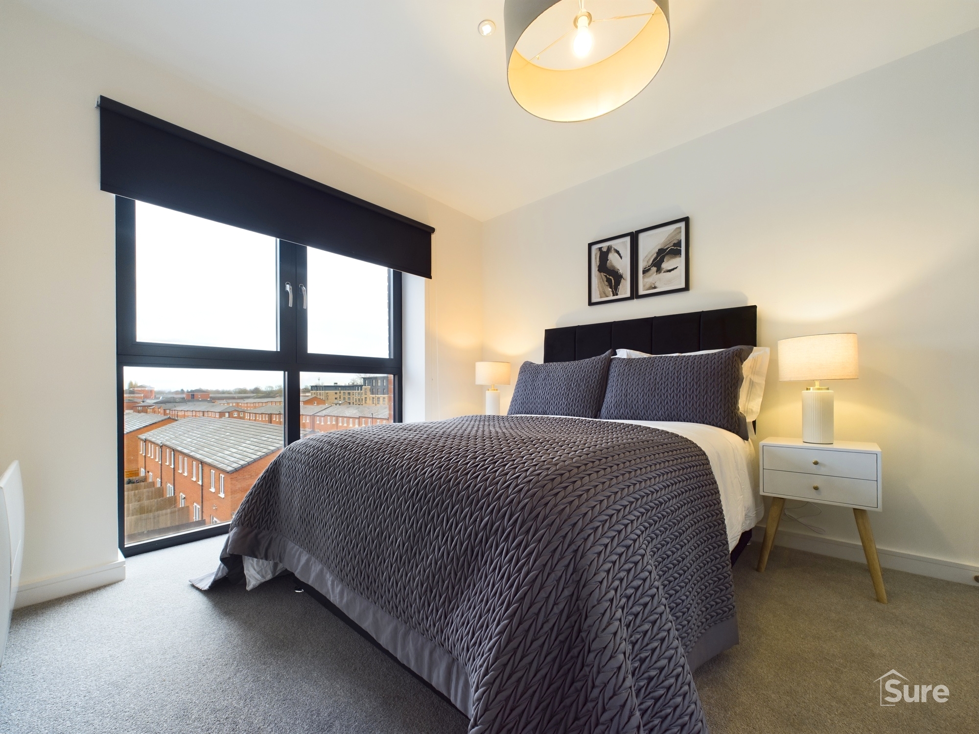 The apartment further offers a contemporary main bathroom, finished with a white three-piece suite and chrome fittings.