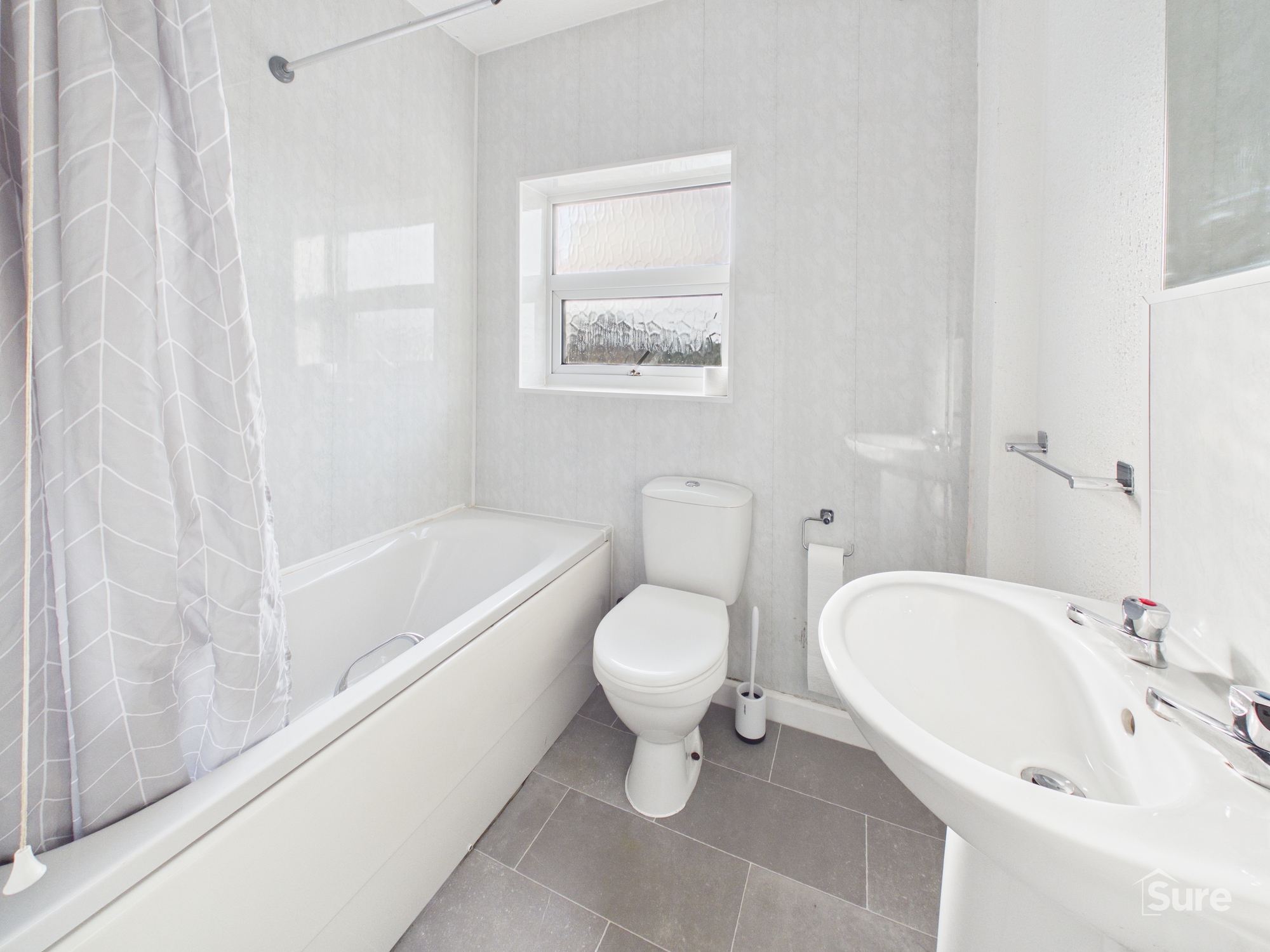 Window to rear. Having a bath with shower over, pedestal wash hand basin and low level WC, radiator.