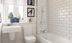 Bath with shower over, wash hand basin and low flush WC, heated towel rail.