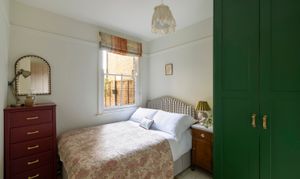 The bedroom is a comfortable double with bespoke fitted wardrobes, while the bathroom has been refitted in a clean, contemporary style.