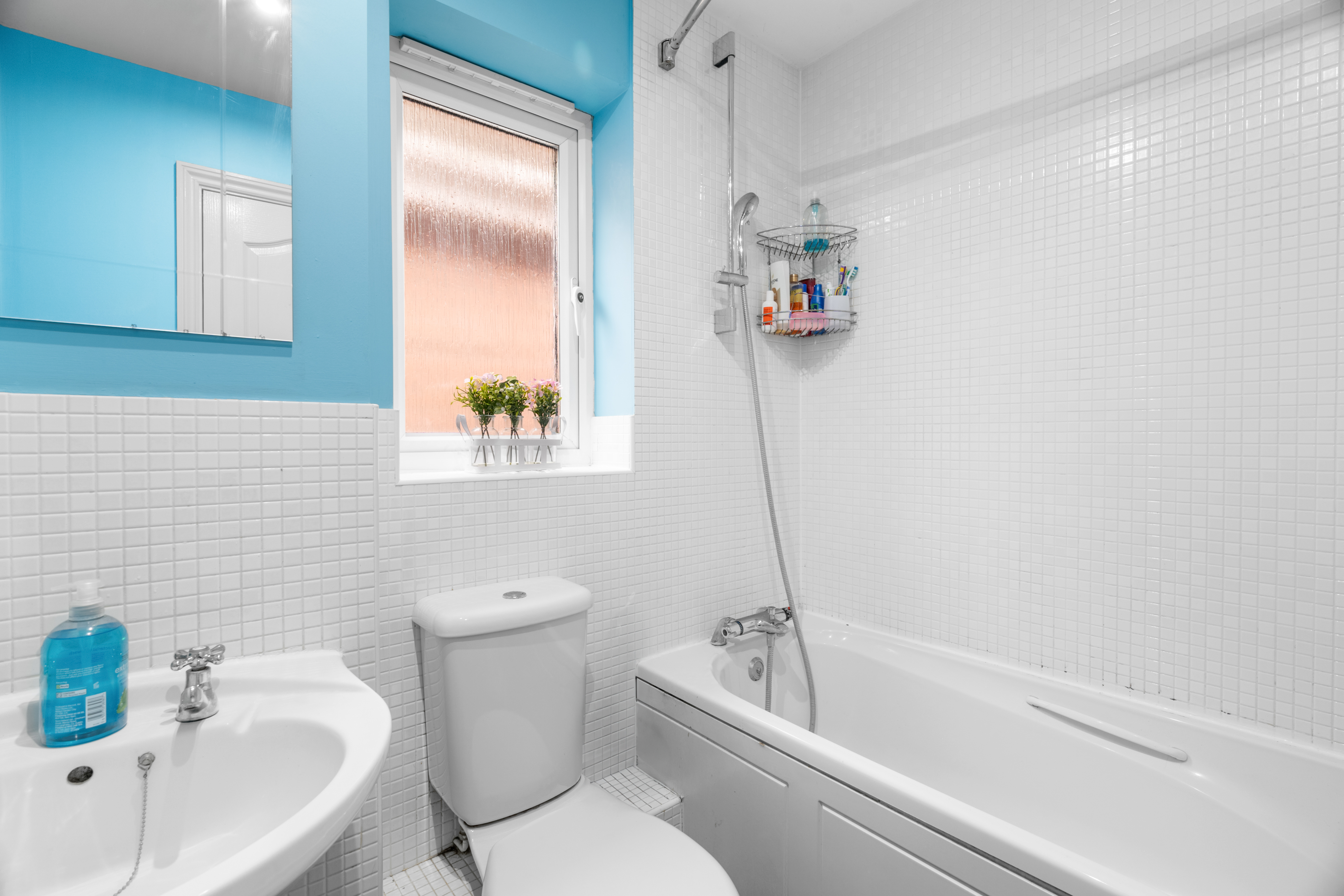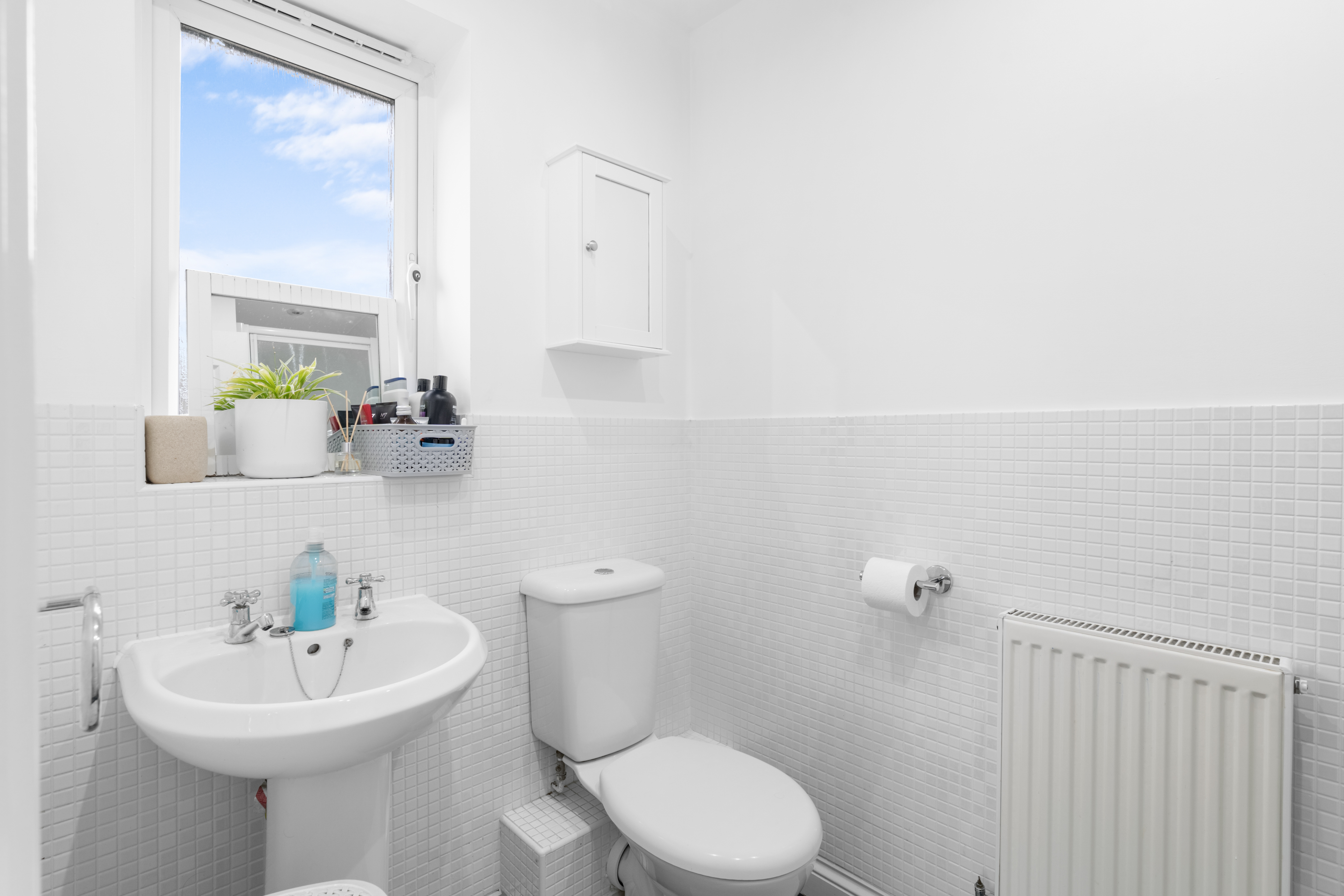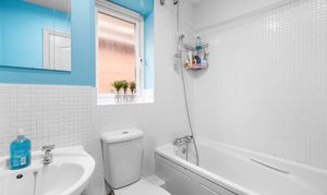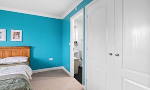 On the first floor there are four bedrooms - the master bedroom with ensuite and built-in wardrobe, a landing with airing cupboard, and a family bathroom with half-tiled walls and a shower over the bath.