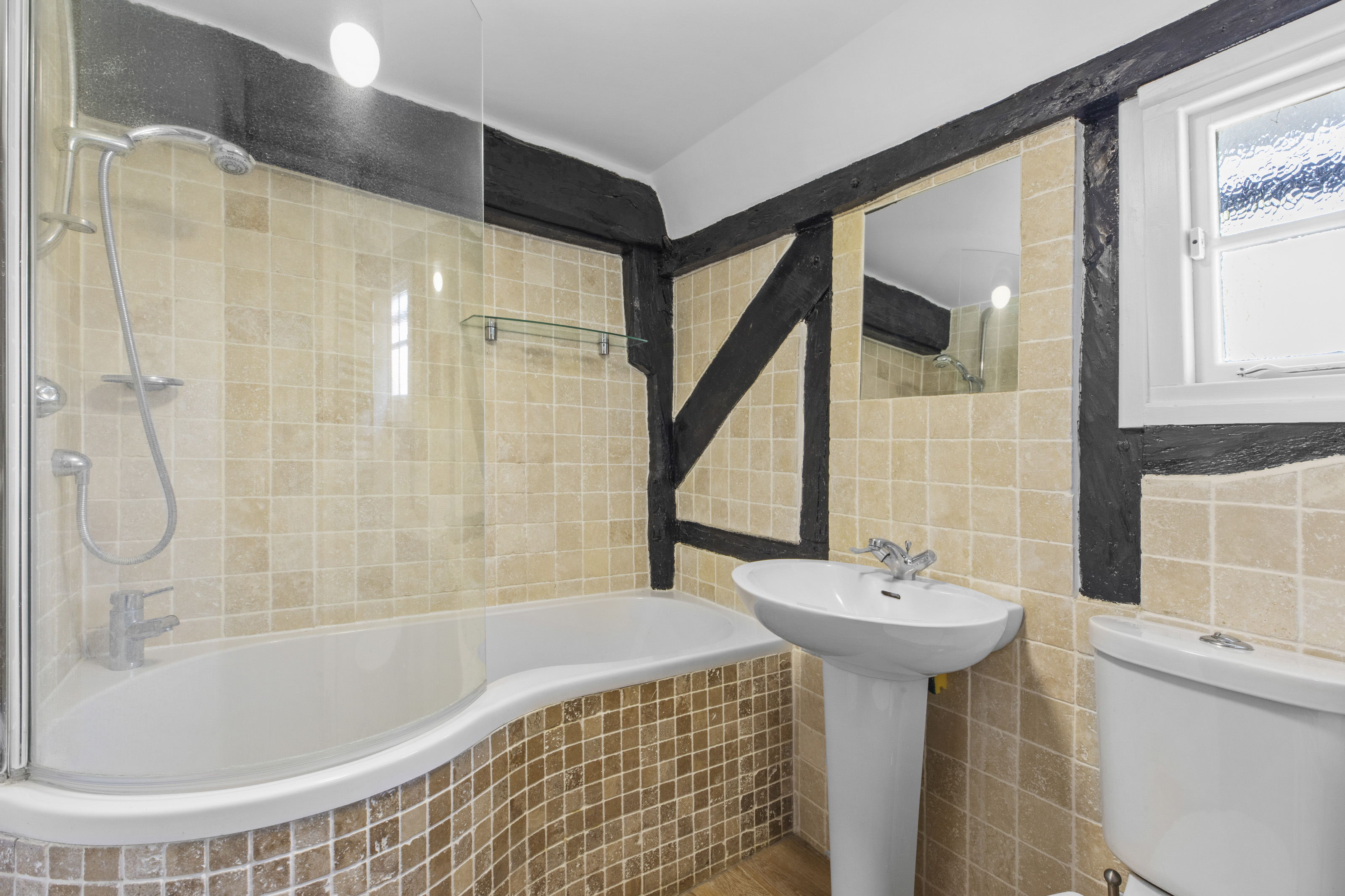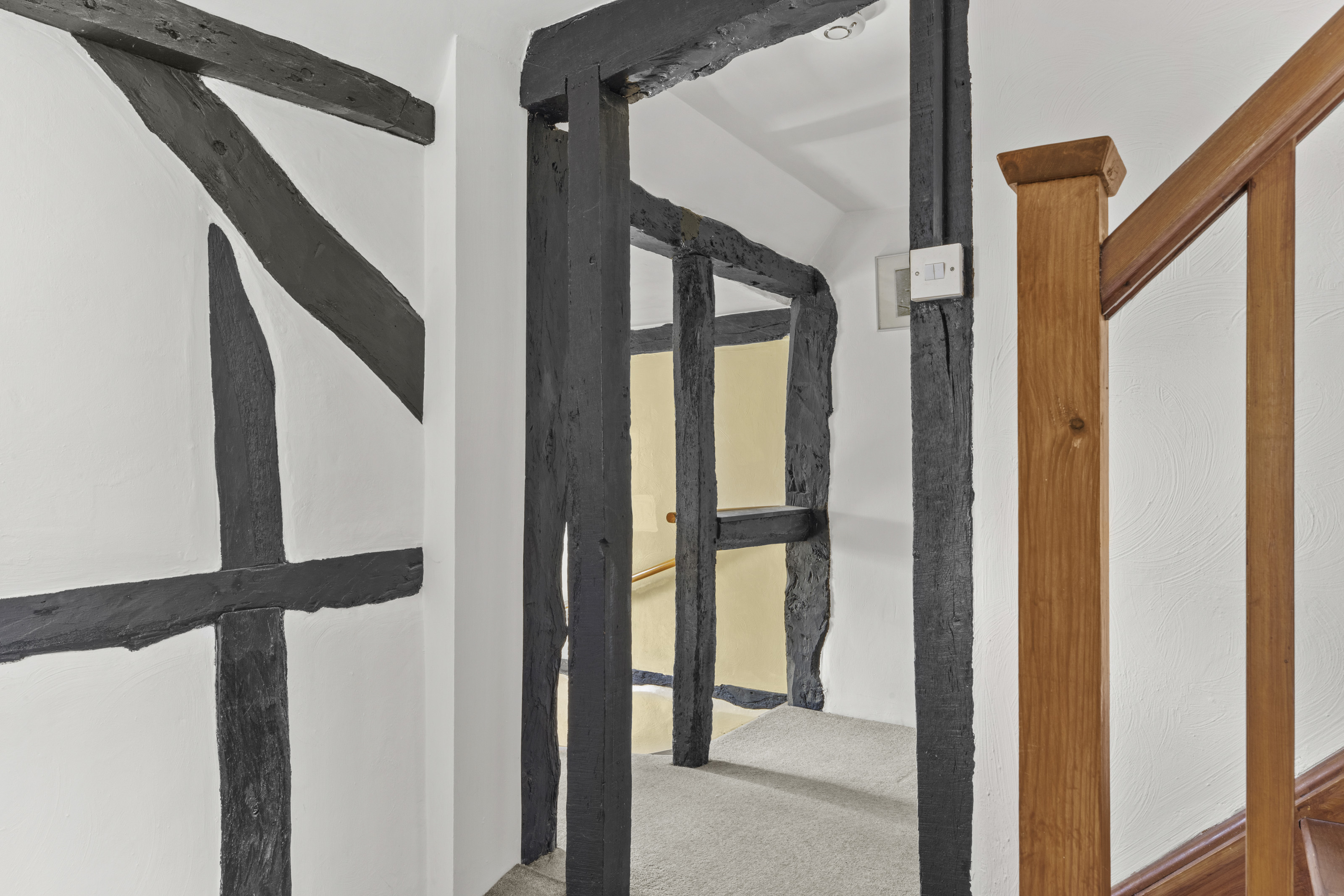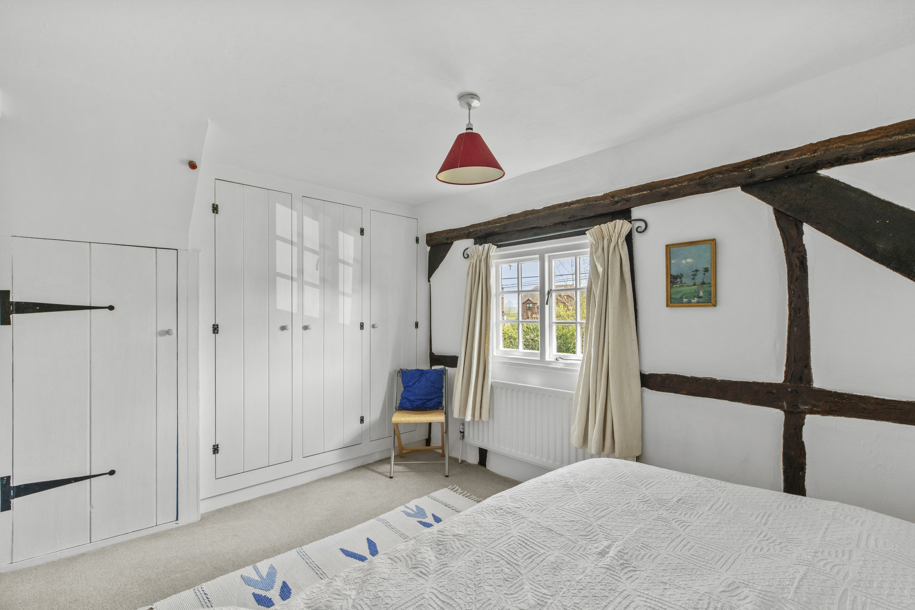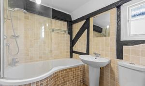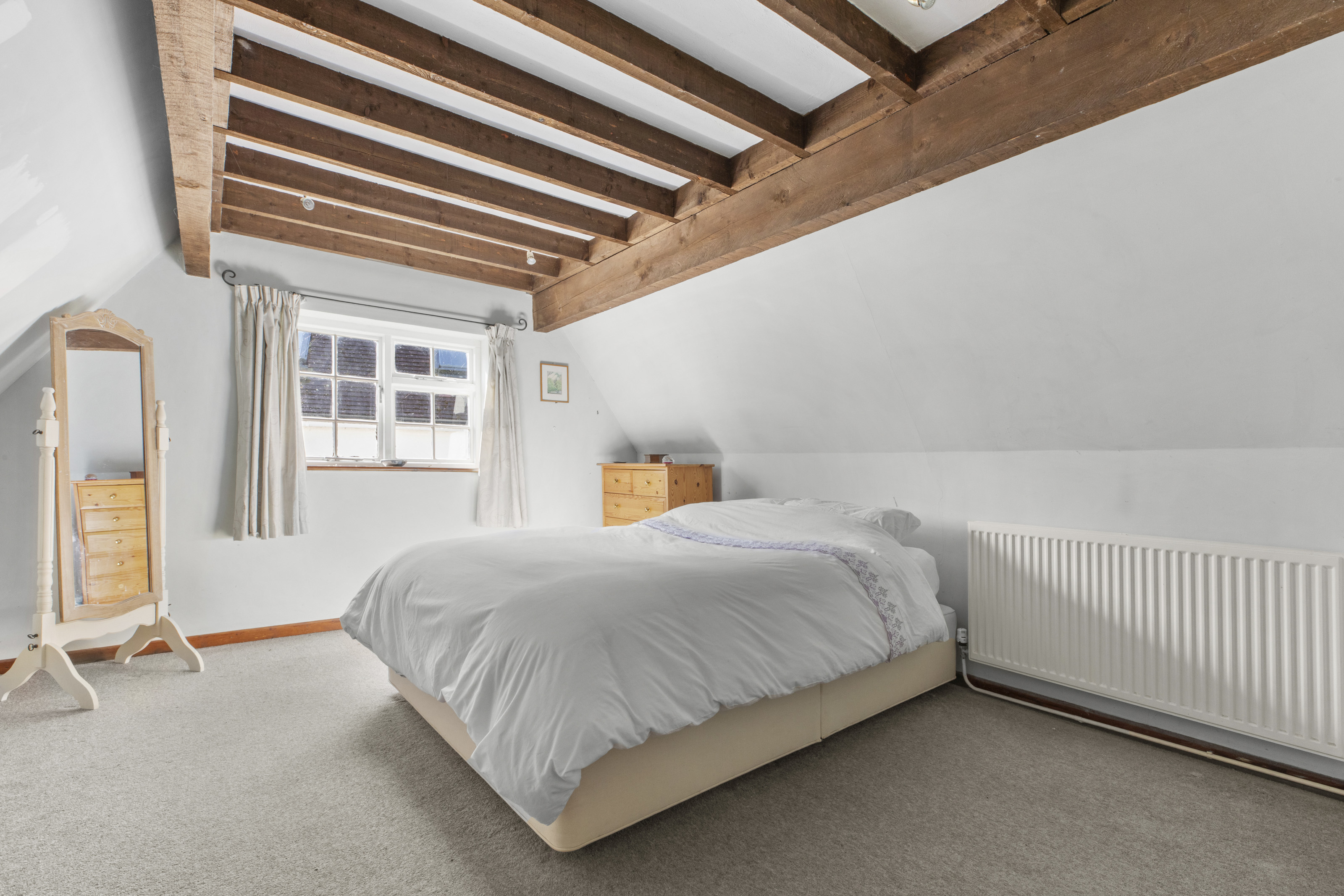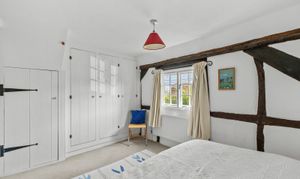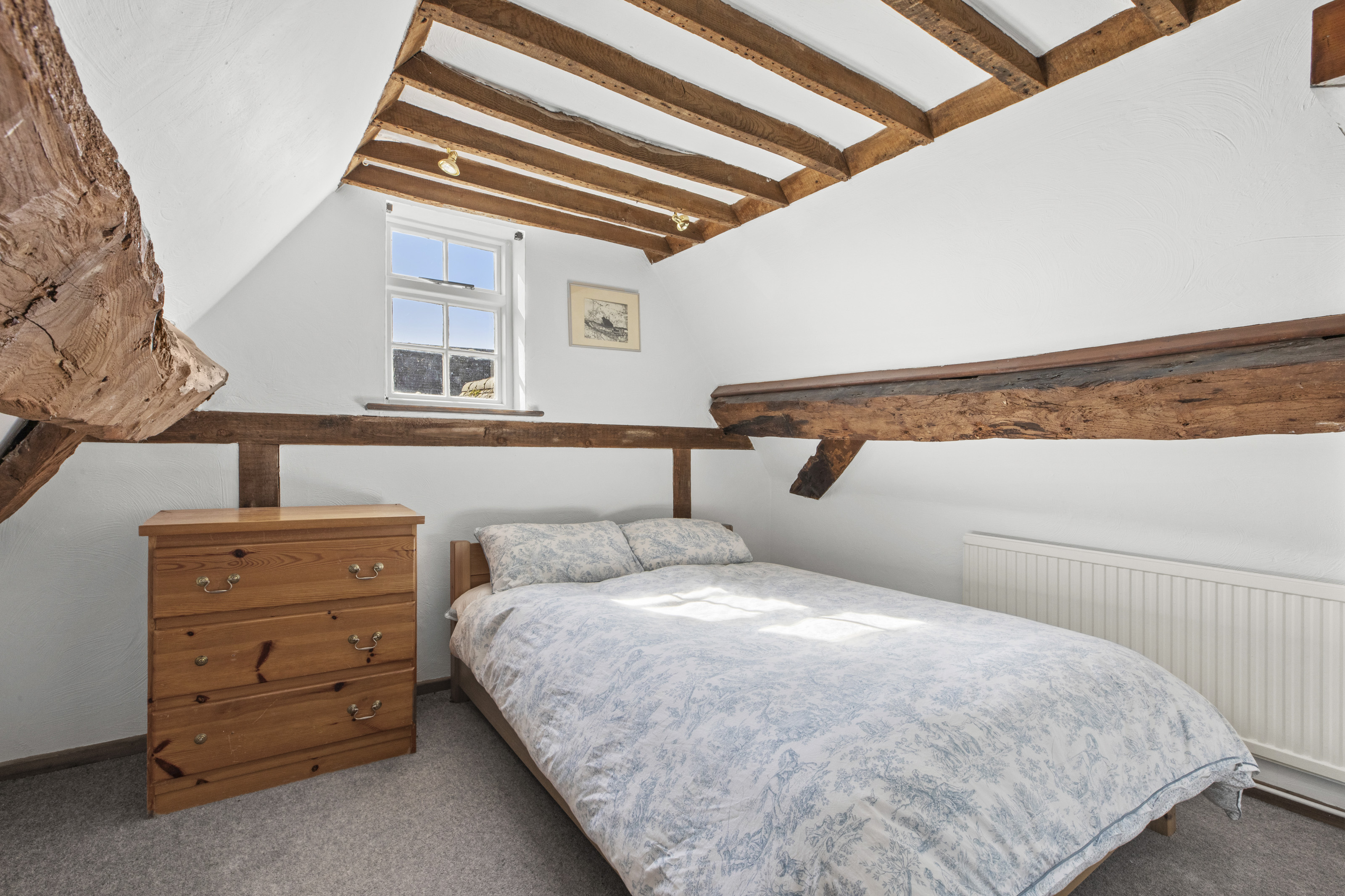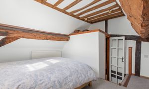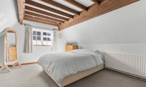 Upstairs, you’ll find two generous double bedrooms and a well-appointed bathroom, while the top floor offers an additional bedroom ideal for guests, or a hobby space. Character features such as exposed beams and multi-aspect windows run throughout, enhancing the home’s warmth and individuality.
