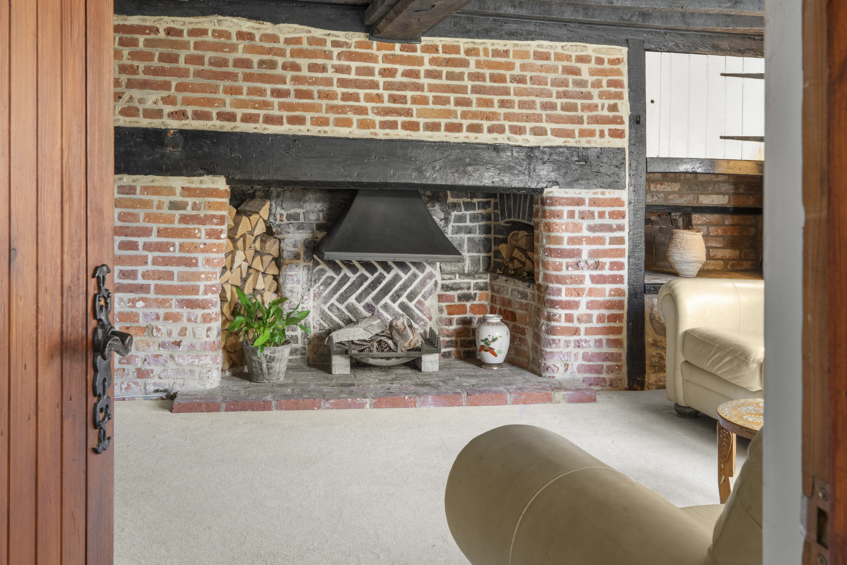 The cosy sitting room, featuring exposed beams and a striking fireplace, offers the perfect place to relax. Practical touches on the ground floor include a separate utility room and a stylish shower room.