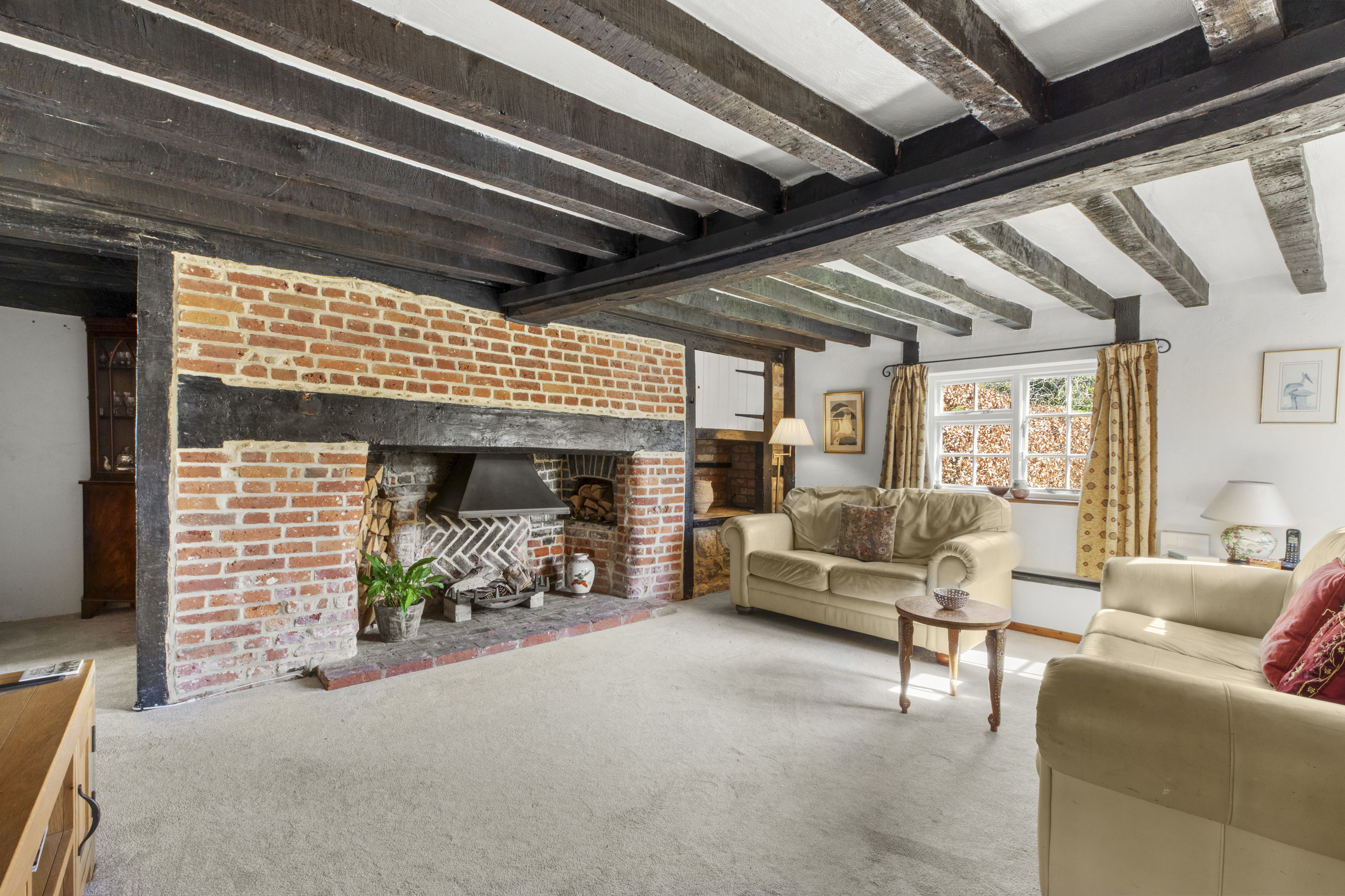- A CHARMING SITTING ROOM WITH EXPOSED BEAMS AND STUNNING FIREPLACE