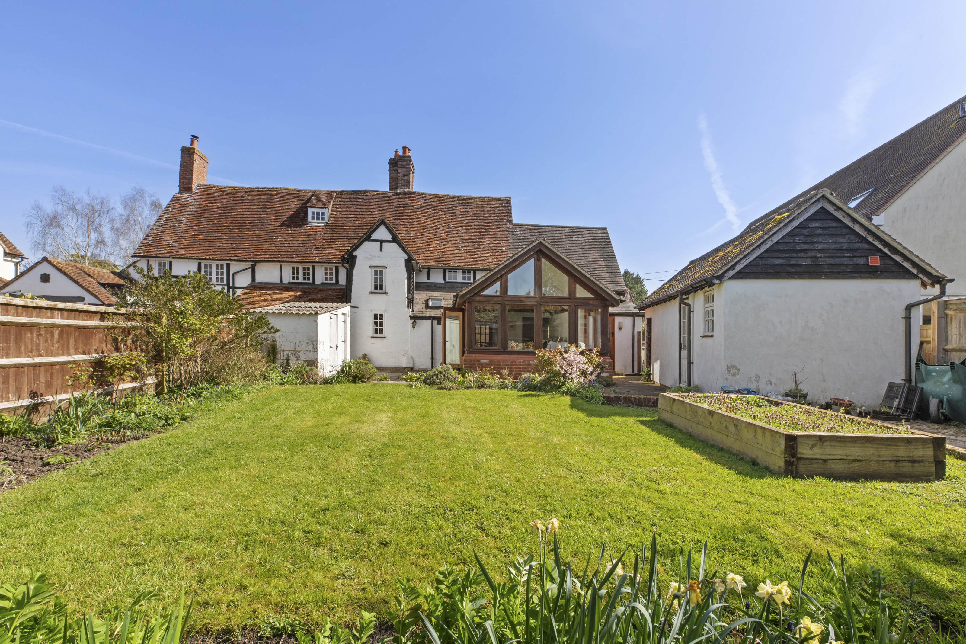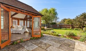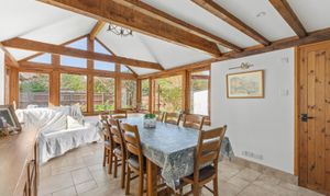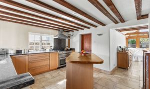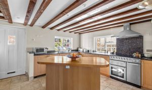 Step inside this beautiful Grade II listed cottage and discover a perfect balance of period charm and modern living. The elegant Shaker-style kitchen, complete with a central island, provides an inviting space for casual dining or entertaining, flowing effortlessly into a stunning vaulted dining area framed in oak and filled with natural light.