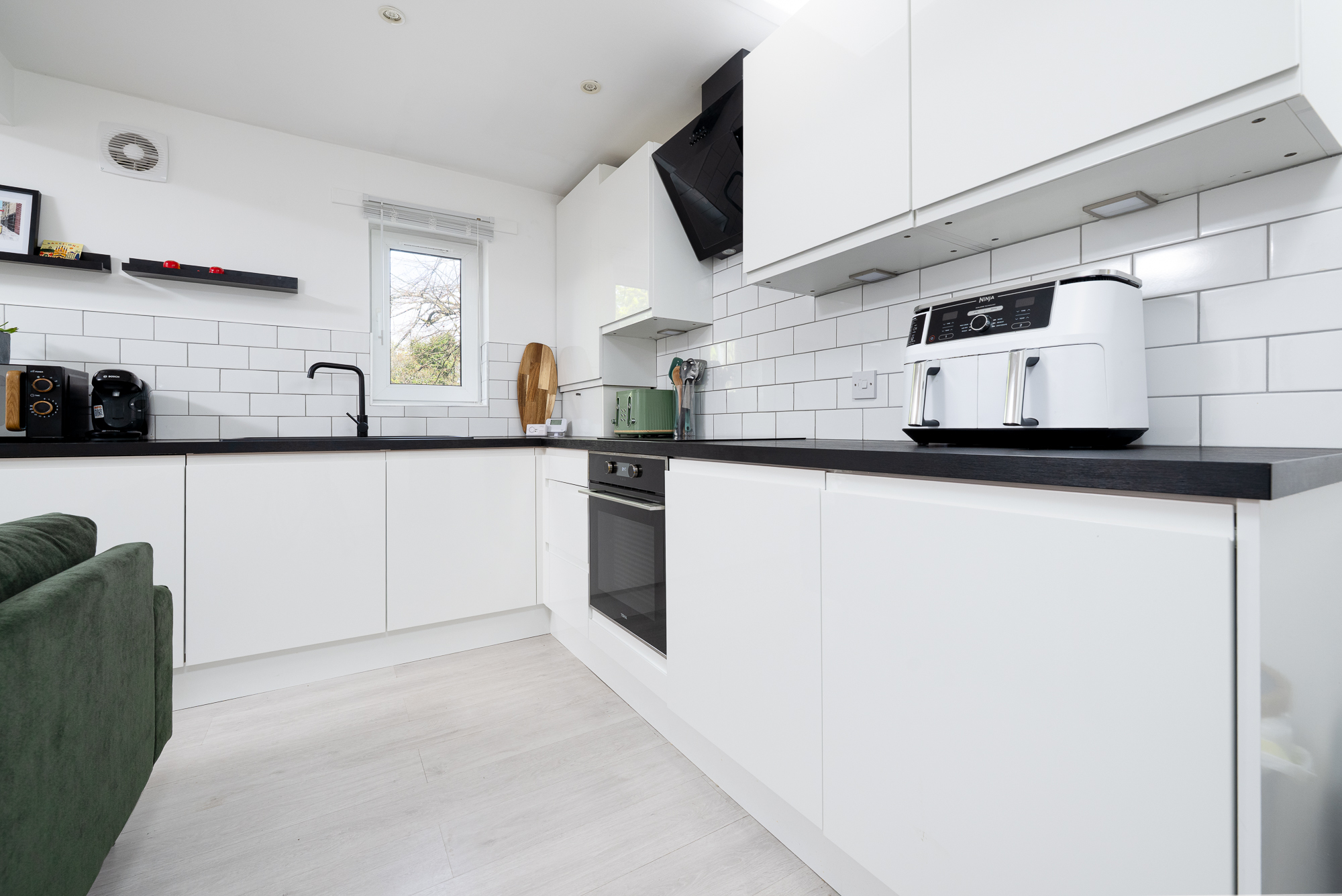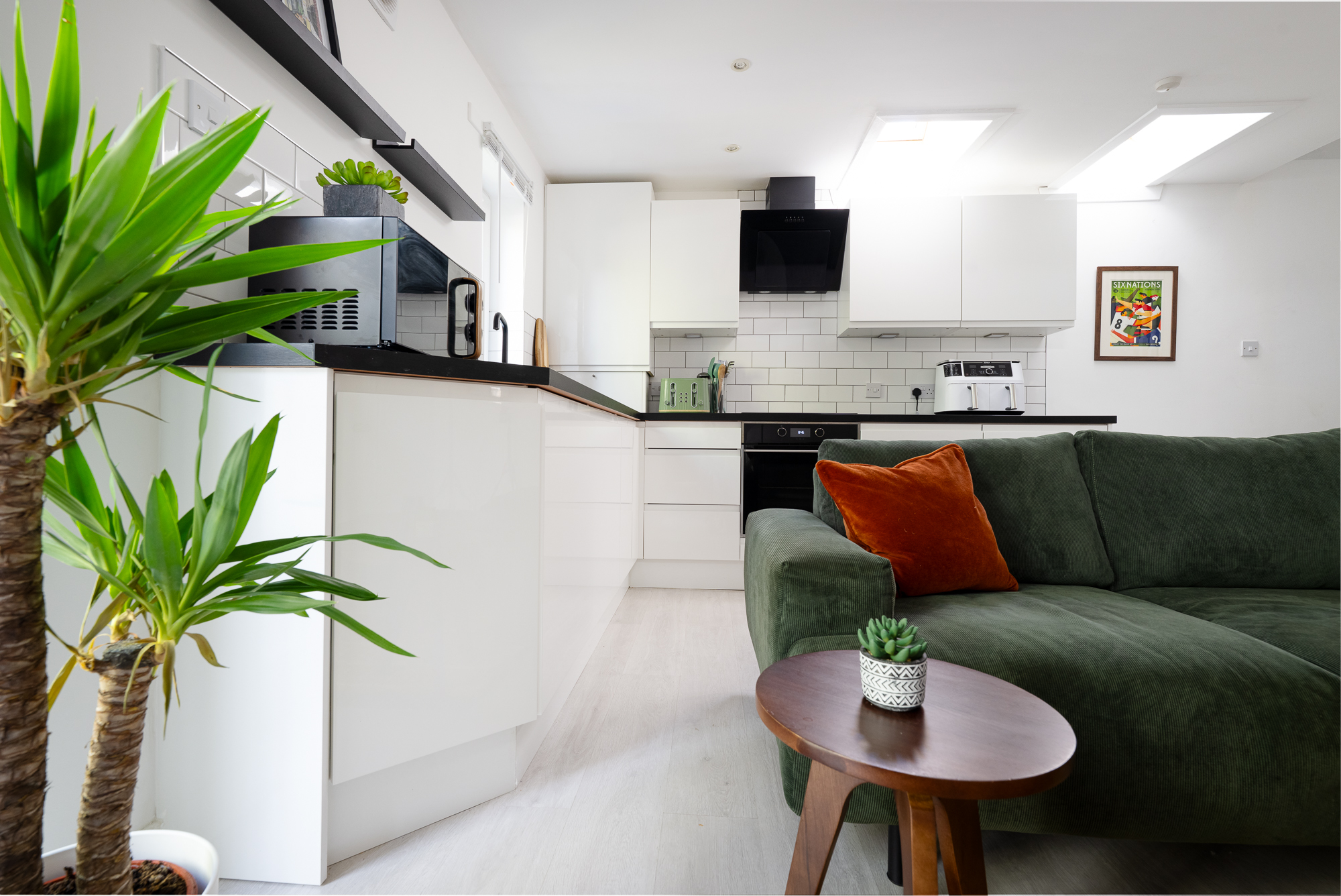 - Bright open plan living with Juliette balcony; Perfect for relaxing or hosting, with natural light and doors opening to a fresh, airy feel.