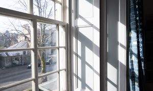 - Elegant lounge with high ceilings, intricate cornicing, and large sash windows