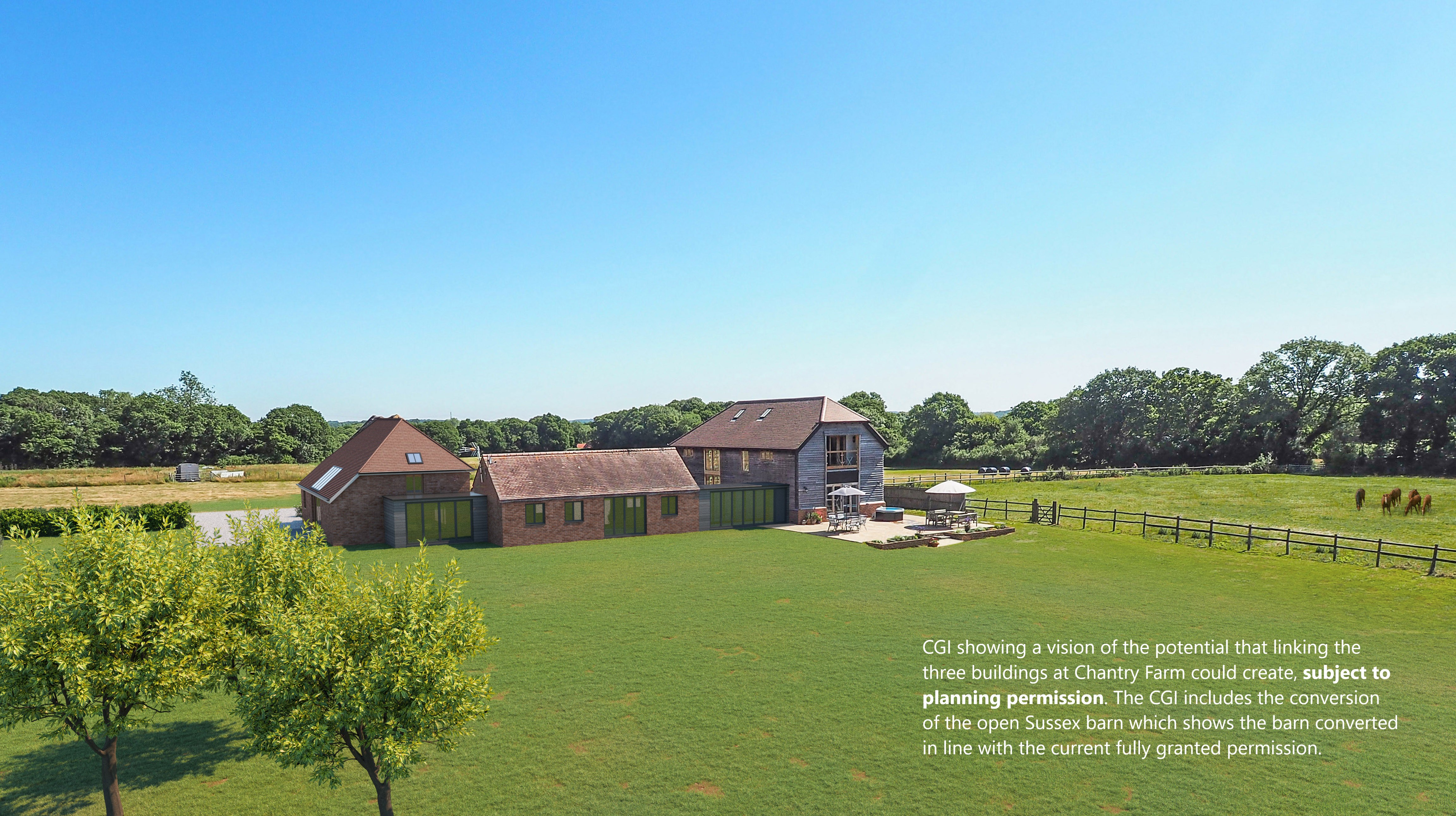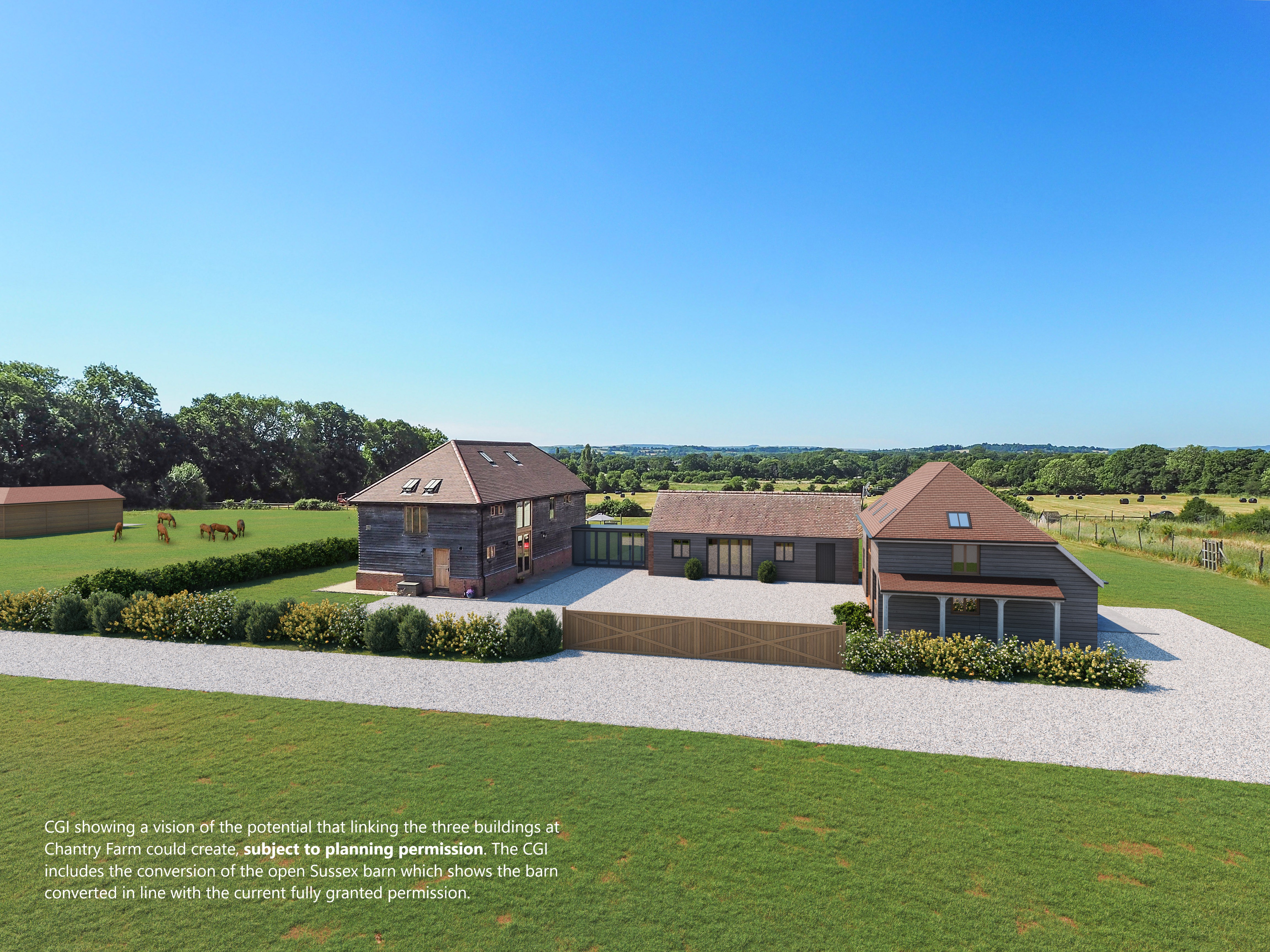 - Over 18 acres of south facing land with uninterrupted panoramic South Downs views