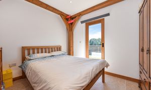 Crafted with passion and precision by the current owners, this architect-designed oak framed barn style residence exudes charm and elegance. The open plan living area on the first floor offers a seamless flow, showcasing vaulted ceilings with exposed beams, a high-spec hand-built kitchen, and double doors leading to a south-facing balcony that commands breathtaking views of the South Downs and open countryside.