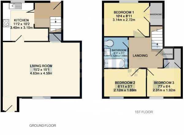 Double glazed window to front, feature electric fire, radiator, useful storage cupboard