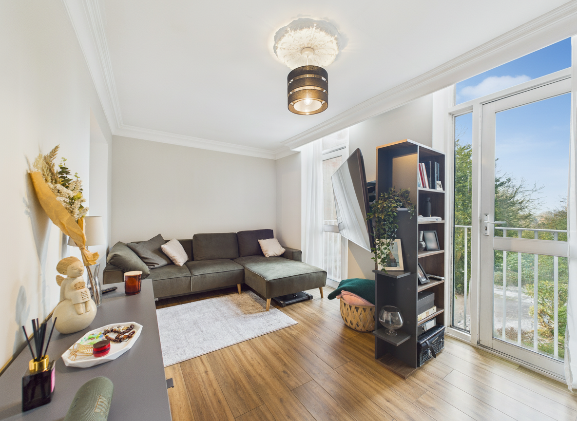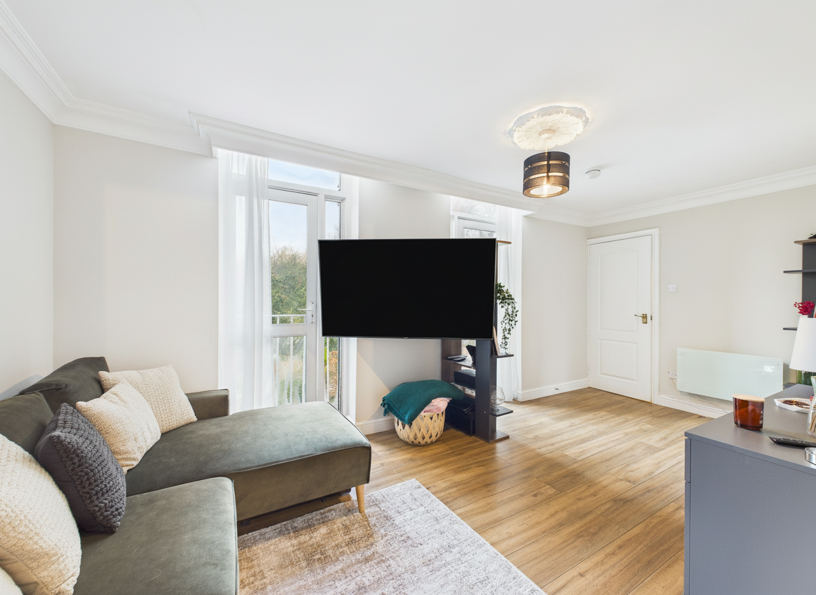 - Bright living space with a Juliet balcony and excellent natural light