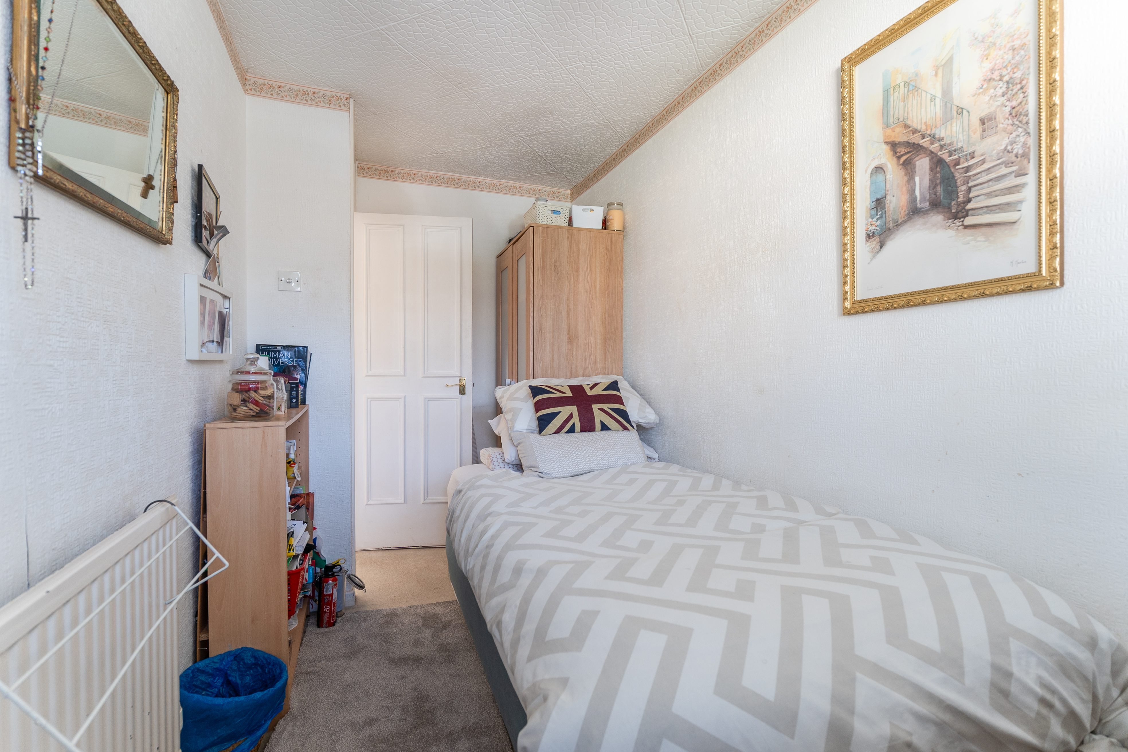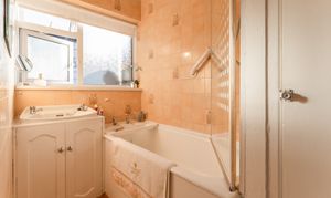 The first floor comprises three well-proportioned bedrooms and the family bathroom, accompanied by a separate WC. There are two generous double bedrooms, each offering comfortable accommodation, and a large single bedroom which could serve as a child’s room, guest room or home office. The layout provides flexibility for family living, with scope to update and refresh the interior as desired.