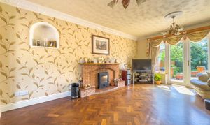 Upon entering the property through the porch, you are welcomed into a spacious hallway with elegant parquet flooring, boasting high ceilings and two large stained glass windows. Doors open through to a WC/guest cloakroom and a delightful dual aspect living room to the east. The living room features a bay window to the front, French doors to the garden at the rear, and a centrepiece multi-fuel burner with feature surround. Sitting centrally into the property, a spacious formal dining room, with a bay window to the rear elevation and a gas fire with a feature surround exudes class and provides beautiful views of the fabulous garden.