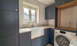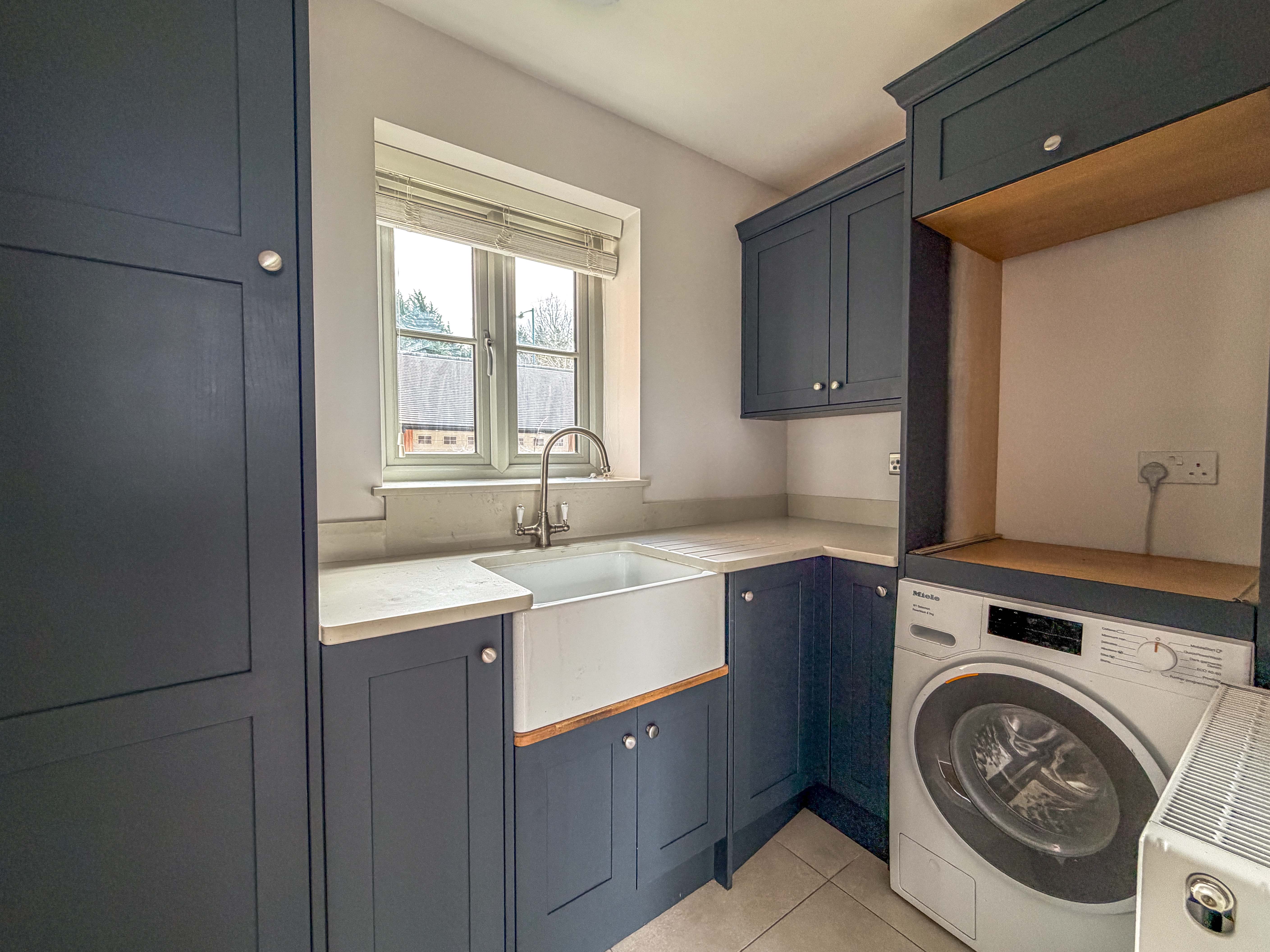 A luxury utility room, also fitted to the same high standard, includes granite worktops and thoughtful storage solutions. A guest cloakroom/WC completes the ground floor.