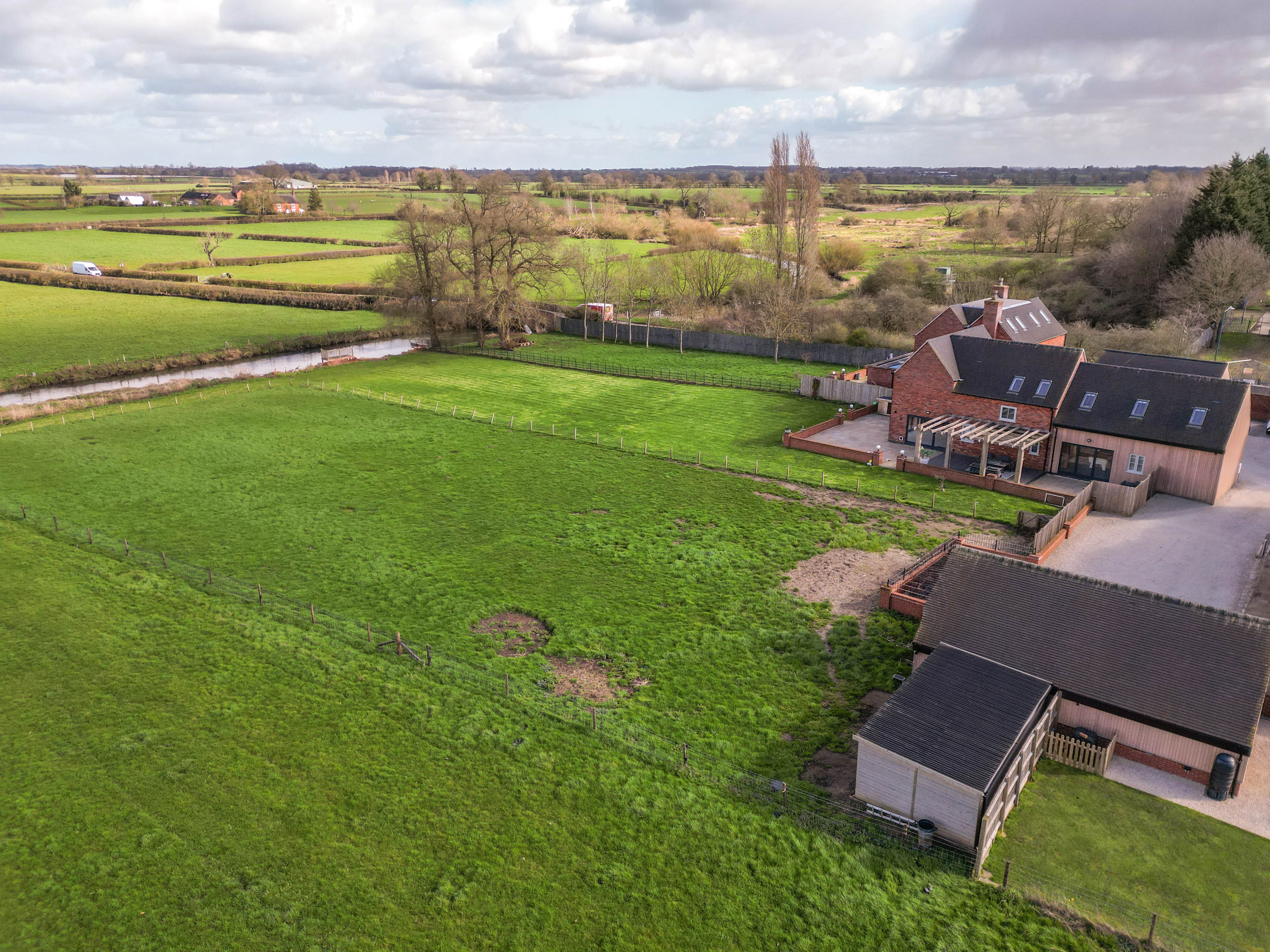 The property enjoys a truly special setting, with its landscaped garden extending down to the banks of the River Scene, complete with a private fishing station, offering tranquil water views and the ultimate outdoor escape. A dedicated and secured section of the plot has been cleverly designed to house donkeys and a sheep, with stables in place – perfect for animal lovers or those seeking a hobby farm lifestyle.