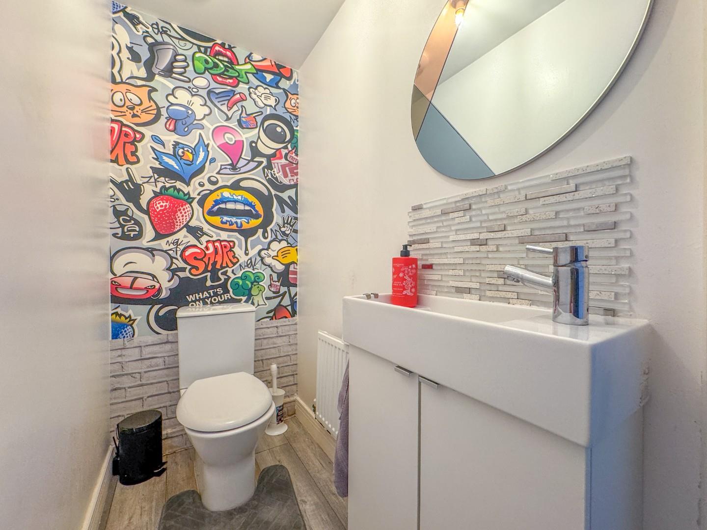The property benefits from gas central heating and double glazing and briefly comprises: entrance hallway with stairs leading to the first floor, under stairs storage cupboard & w.c; lounge with feature bay window; open plan kitchen/diner with a range of modern fitted base and wall units, built in double oven, hob, extractor, dishwasher and double doors leading to the enclosed rear garden; utility room with sink and plumbing for a washing machine and door leading to the rear of the property.