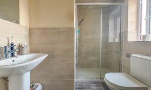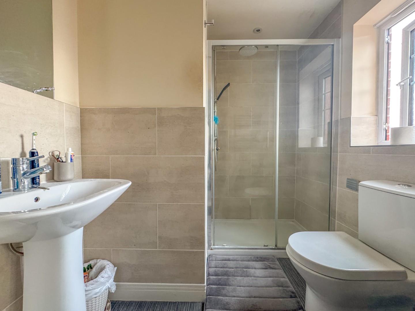 To the first floor there are 4 bedrooms, the main bedroom & bedroom 2 both having en-suite shower rooms and the family bathroom with white suite.