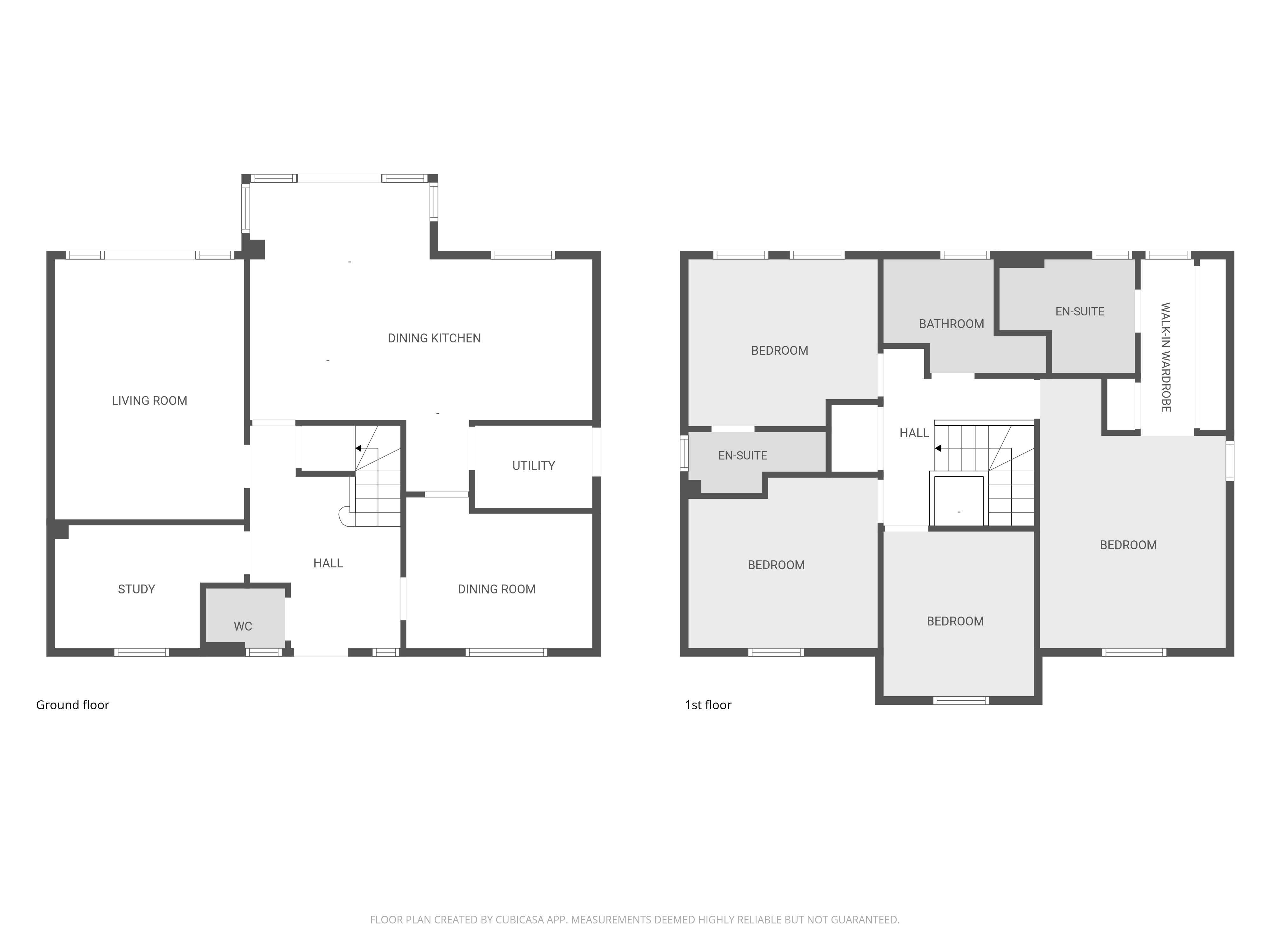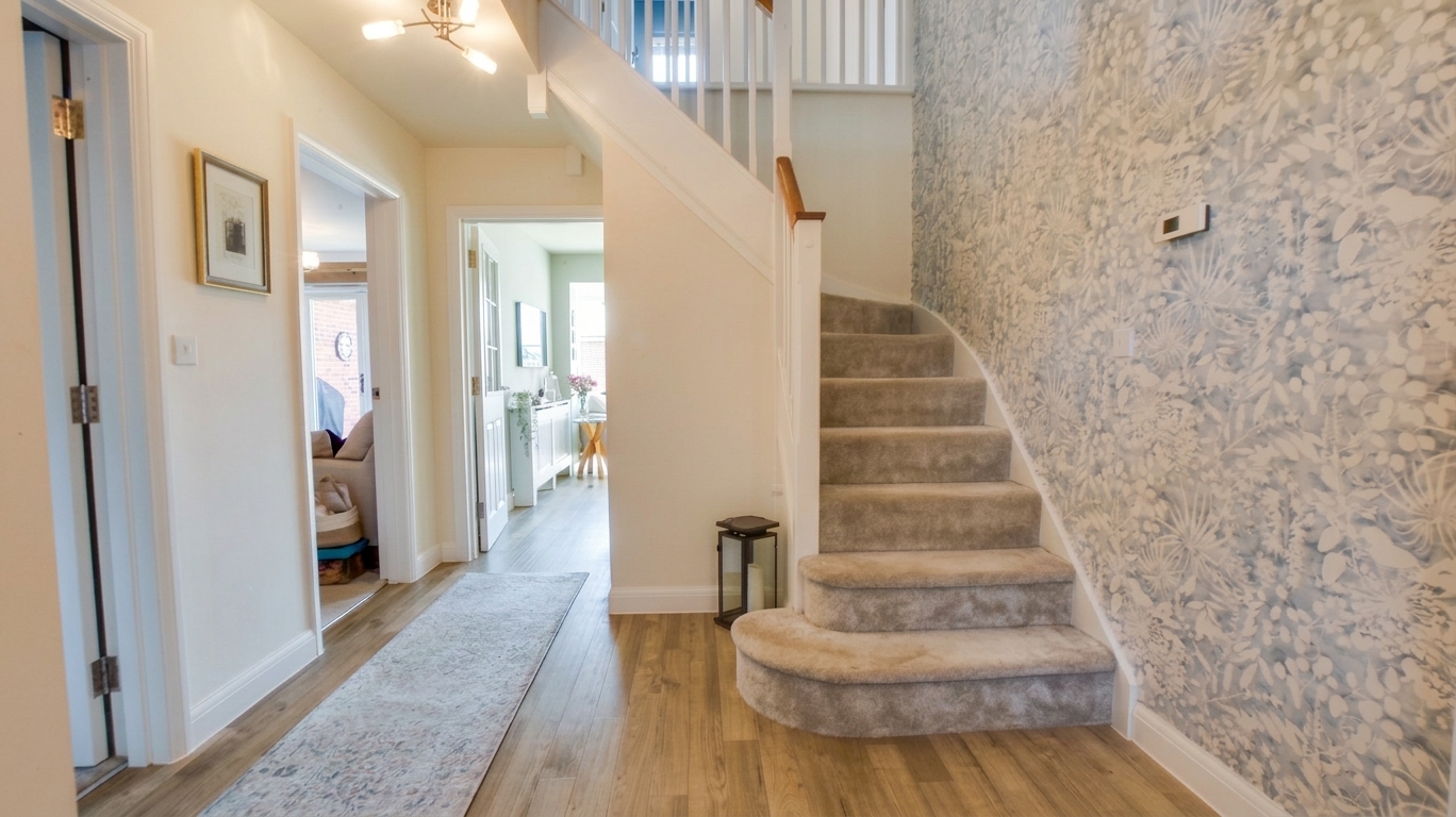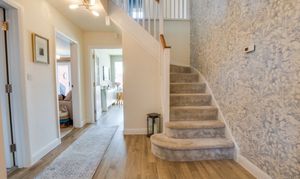 On the first floor, there are four bedrooms and a family bathroom. The principal bedroom includes a walk-in wardrobe and an en-suite bathroom fitted with a bath and separate shower. Bedroom two also benefits from its own en-suite shower room.