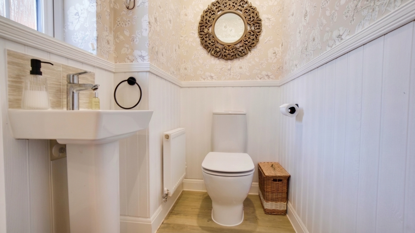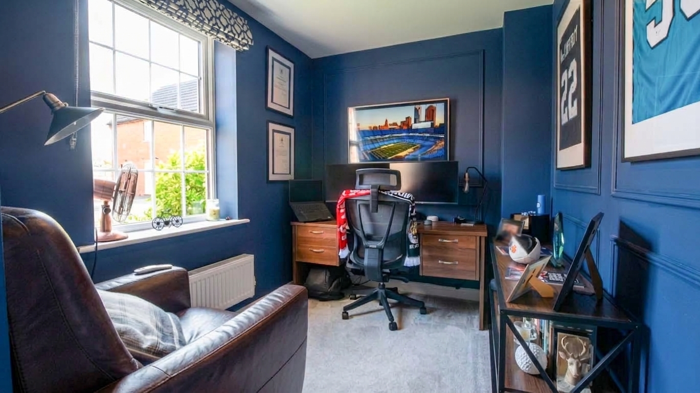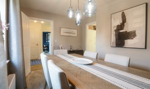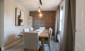 The property is entered via a hallway, which provides access to a downstairs WC and the main living spaces. To the front elevation, there is a dining room, while the living room sits to the rear and benefits from patio doors opening onto the garden. A separate study offers a practical space for those working from home.