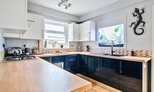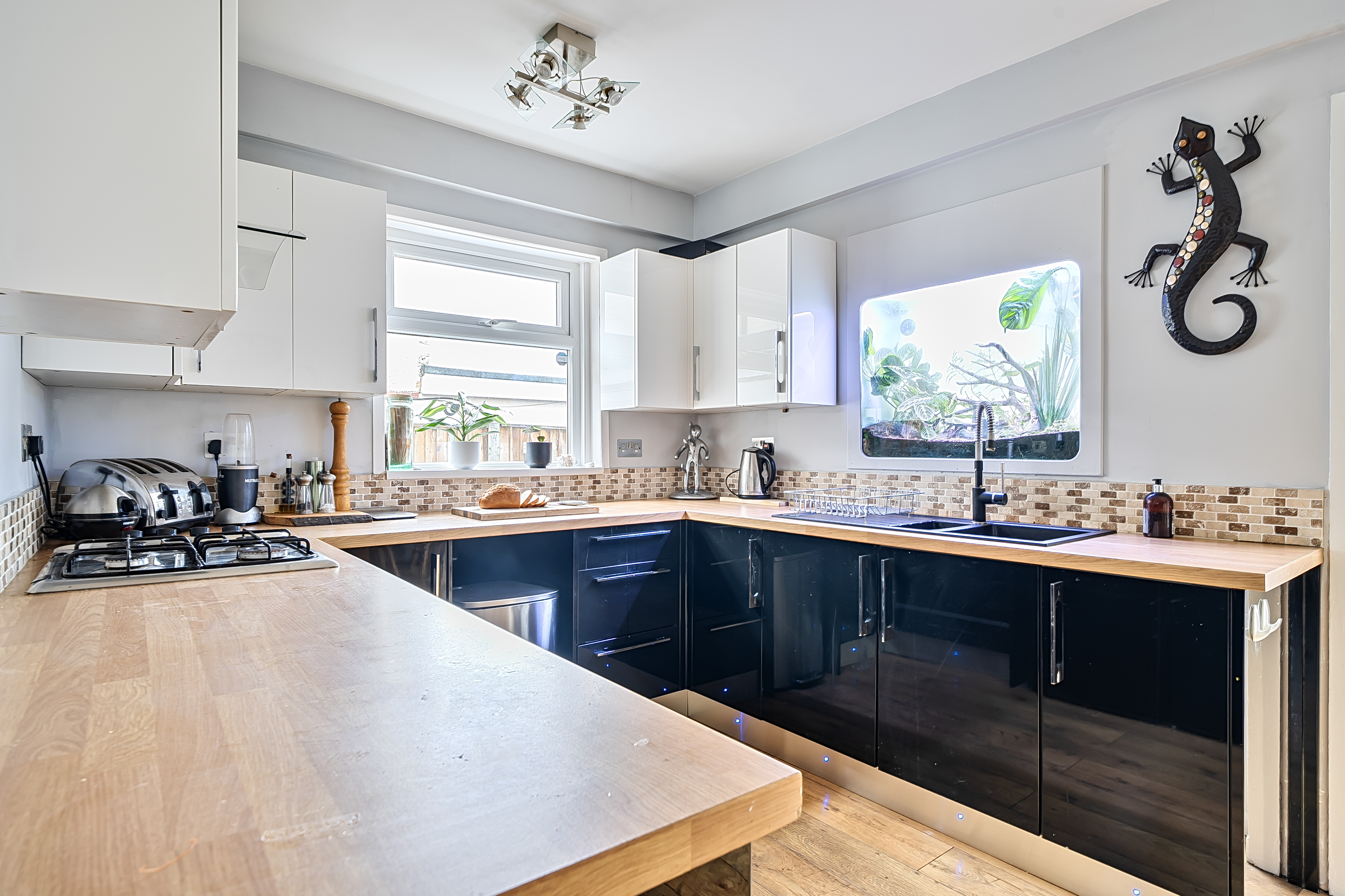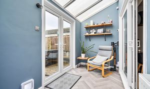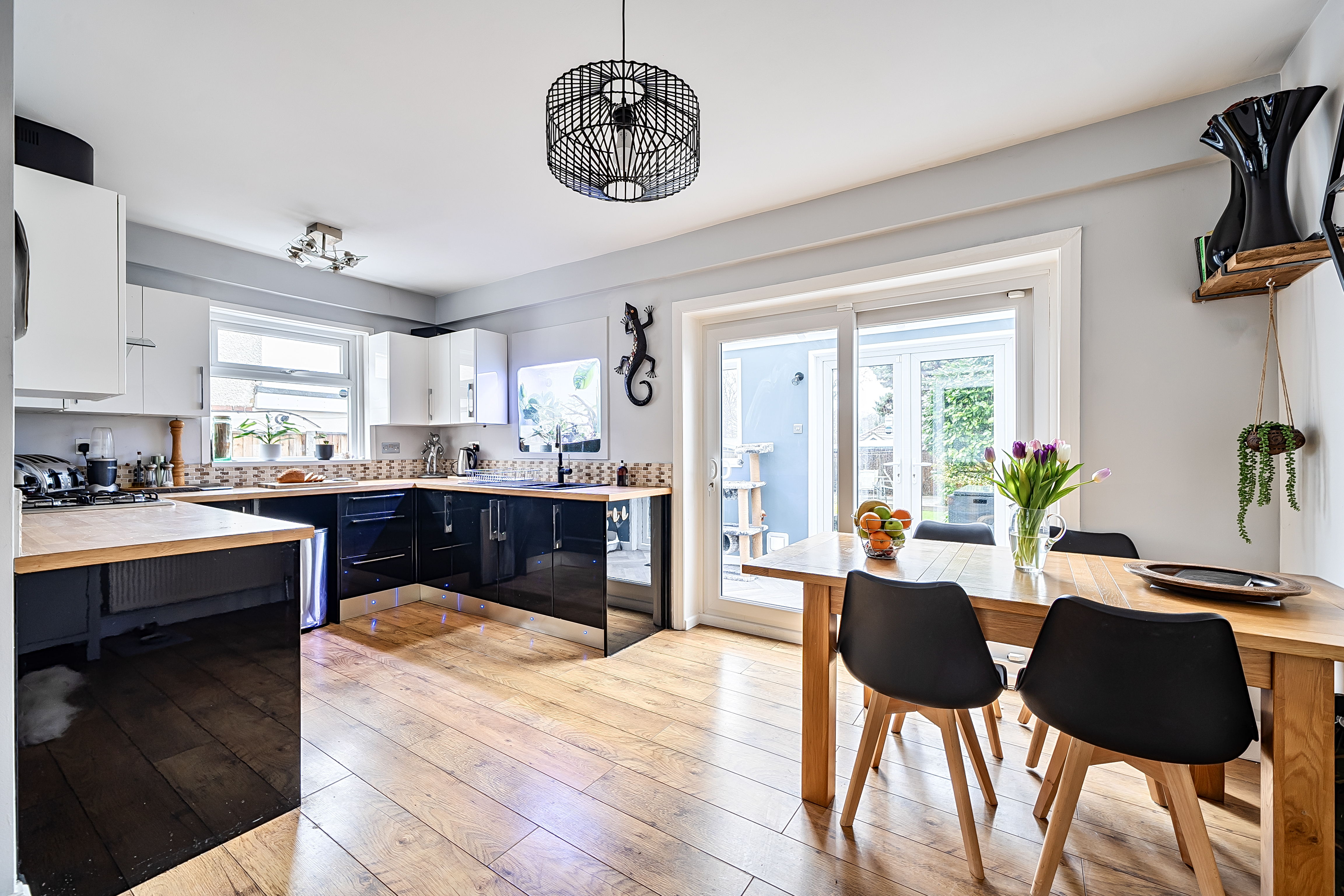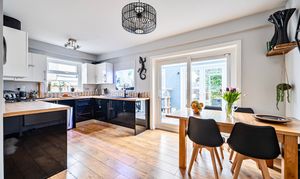Set in a popular and well-connected residential area of Bitterne, this home offers a practical and welcoming layout from the moment you step through the front door. The entrance hall flows into a bright and open-plan living space, where the lounge is positioned at the front and framed by a bay window that brings in plenty of natural light. A stylish media wall creates a natural focal point for relaxing evenings or weekend movie nights, and the laminate flooring runs seamlessly into the dining area and kitchen, giving a sense of space and continuity. The kitchen has a modern finish, including under-unit LED lighting for added atmosphere, and features a sink with mixer tap and drainer, built-in electric oven, gas hob with extractor hood, and space for your chosen undercounter appliances. There's ample room for a family dining table, making everyday mealtimes or weekend entertaining easy and enjoyable. Sliding patio doors lead through to the conservatory – a handy, flexible extra space that could be used as a playroom, sunroom or home office – and French doors open directly onto the garden, letting the outside in during warmer months. A ground floor WC tucked off the conservatory adds everyday convenience, especially for busy families or when guests visit.