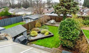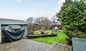 Outside, the rear garden has been designed with both privacy and practicality in mind. It’s fully enclosed, making it a safe space for children or pets, and includes a decked terrace ideal for outdoor dining or simply enjoying a quiet coffee. A lawn adds some greenery, and there’s a pond feature that adds a touch of character for those who enjoy outdoor life. The manageable size of the garden makes it easy to maintain, whether you’re a keen gardener or just want a peaceful retreat to unwind. The property also benefits from a garage, which is accessible from both the front and rear via double doors, and a separate door leading into the garden, offering additional storage, workshop potential or secure parking depending on your needs.