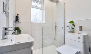 Upstairs, the bedrooms are all comfortably sized with two generous doubles that enjoy plenty of natural light and offer the flexibility to adapt as your needs change. The third bedroom is a larger-than-average single and would make a great nursery, child’s bedroom, or a dedicated workspace for remote working. The family bathroom has been thoughtfully updated and includes a large double shower enclosure with both overhead and handheld shower heads, perfect for quick mornings or relaxing evenings. A modern vanity unit with sink offers good storage space, paired with a matching WC, and the walls are smartly finished with stylish tiling for a clean, low-maintenance feel.