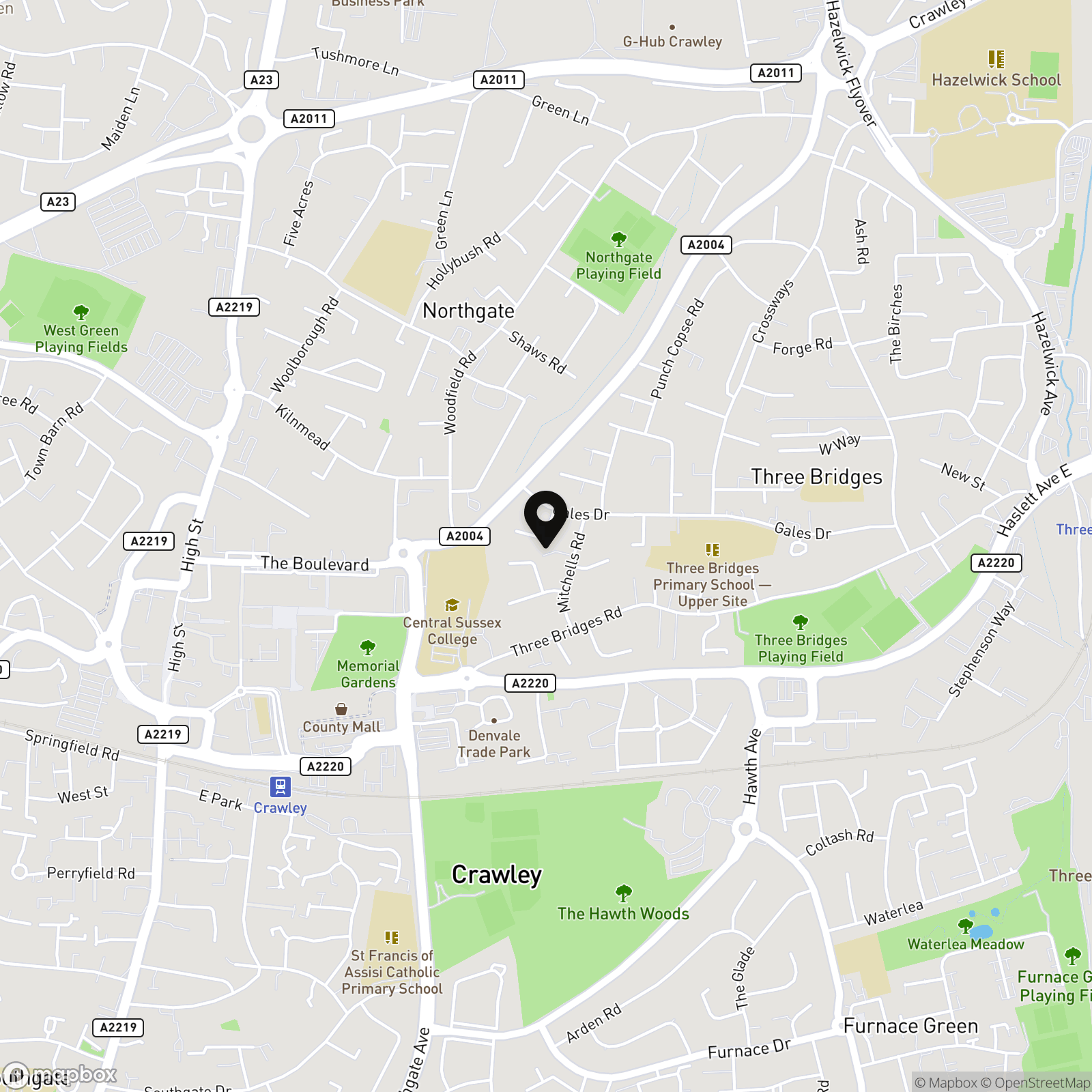 Crawley By car 4 mins On foot 16 mins - 0.8 miles | Three Bridges By car 4 mins On foot 19 mins - 0.8 miles | Ifield By car 7 mins - 2.3 miles | (Source: Google maps)