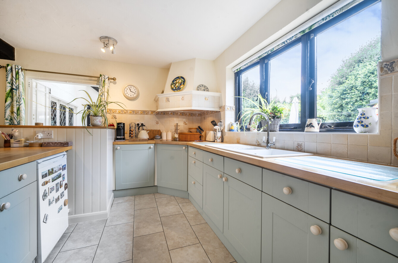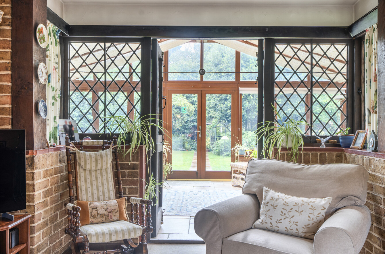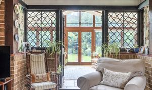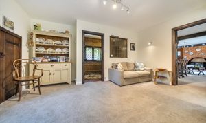 One of the most striking features of the house are the multitude of original features. Beautiful oak doors which feature original wooden Sussex latches and panelling give a wonderful period feel. The unique front door opens onto a lovely panelled entrance hall, with quarry tiled floor. Leading from this is a beautiful staircase with bare brick walls and doors to other ground floor rooms.