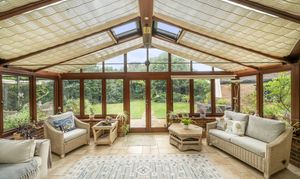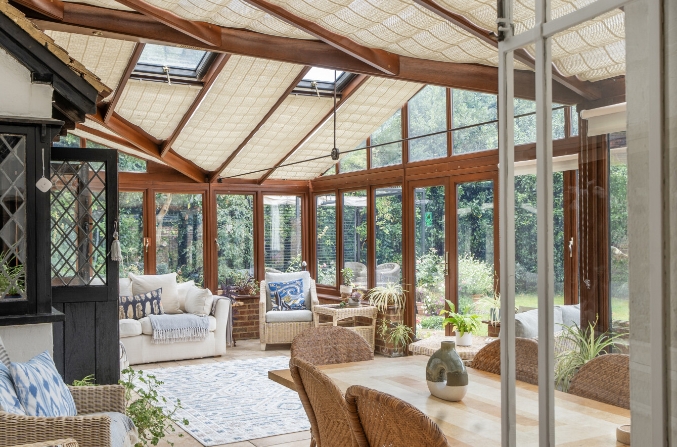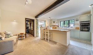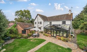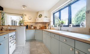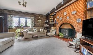The first impression of the spacious reception room is the magnificent exposed brick Inglenook fireplace with wood burner. French doors open from the reception to the large conservatory with tiled floor and under floor heating which in turn opens to the pretty rear garden with an Indian stone patio and large decked gazebo. The kitchen/breakfast room consists of a comprehensive range of base units with wooden worktops, with breakfast bar return. There is ample room for further table and chairs and other furniture. Adjacent to the kitchen is a spacious pantry and cloakroom. The large extension is currently divided into two large rooms, one a utility/ironing room the other a games room/home office with full fibre broadband. Combined, these 2 rooms could create a perfect separate annexe.