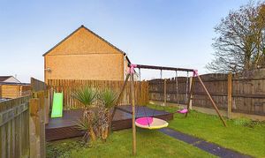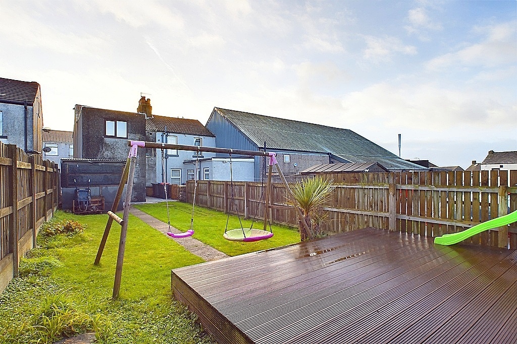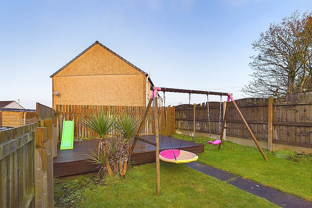 From the front, there is gated access leading to the rear garden, with stylish flagstones. From the door in the kitchen, you enter out onto a patio area, with the same stylish flagstones leading around the house. There is a good sized lawn area, with central path leading to a raised decking area to the rear of the garden. The garden is securely fenced around and benefits from a useful, storage shed.