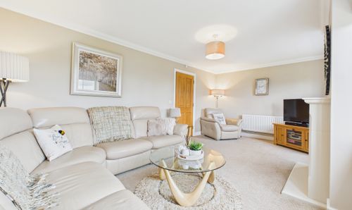 The lounge diner, has tasteful, neutral décor complemented by the wooden doors, architraves and skirtings. The centrepiece of the room has to be the stylish, log burner, set on a granite hearth, with living edge mantel above. There is decorative coving, and dual aspect windows flood the room with natural light, with radiators below, providing plenty of warmth. To the dining room benefits from a large, under stairs storage cupboard and a door leads through to the kitchen.