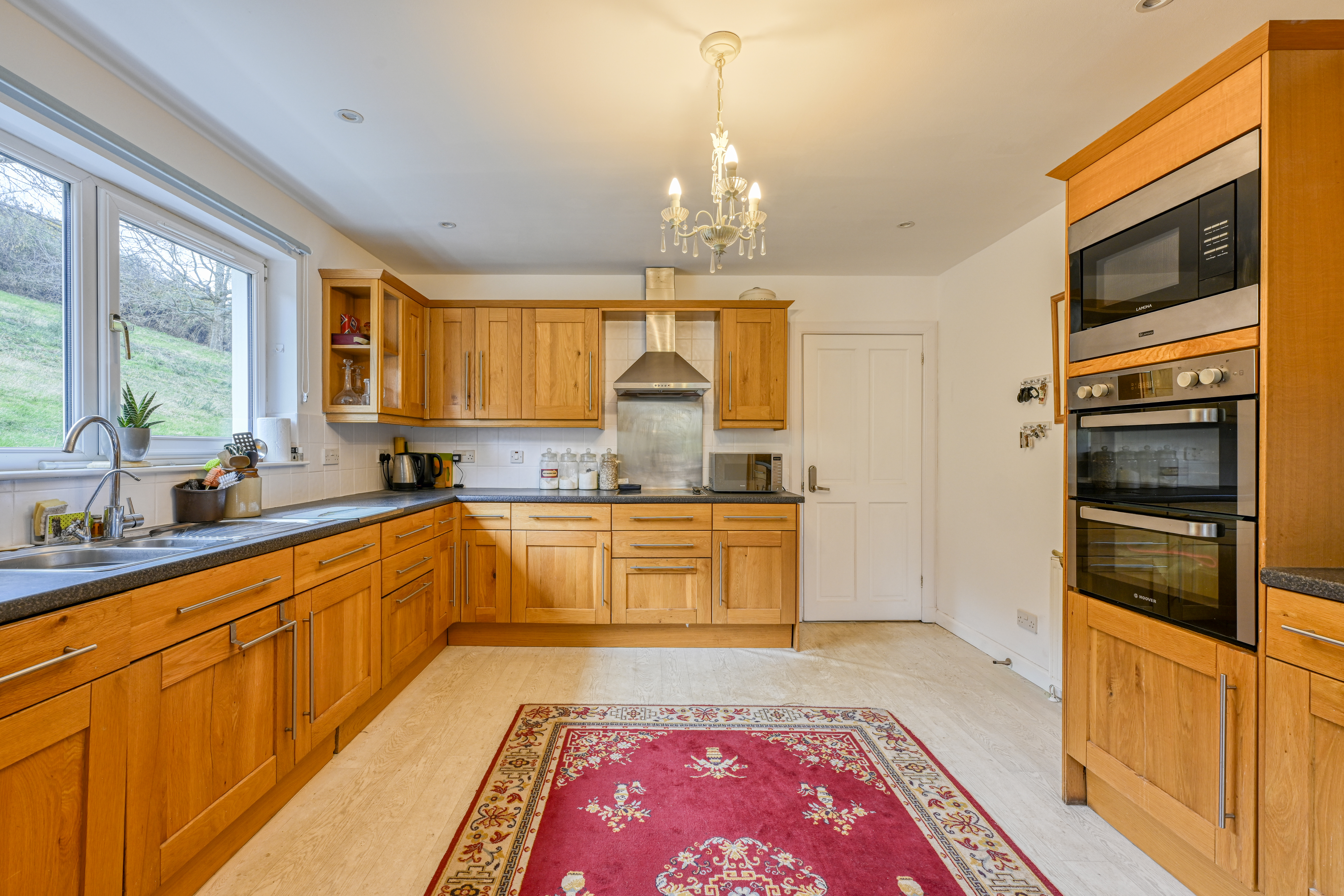 - Generous kitchen with solid wood units and integrated appliances