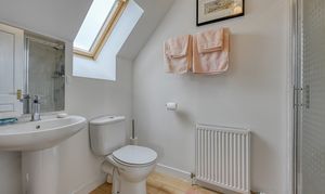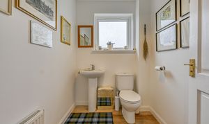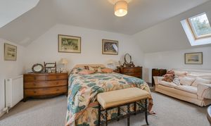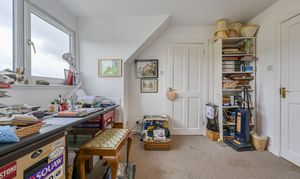 The ground floor is notably adaptable in its arrangement, with a substantial en-suite bedroom ideally suited to guests, multi-generational living or principal accommodation on one level. A further reception room, currently arranged as an additional sitting room, could equally serve as a fifth bedroom if required, while a separate study offers an ideal environment for home working. A utility room and cloakroom complete the accommodation at this level.