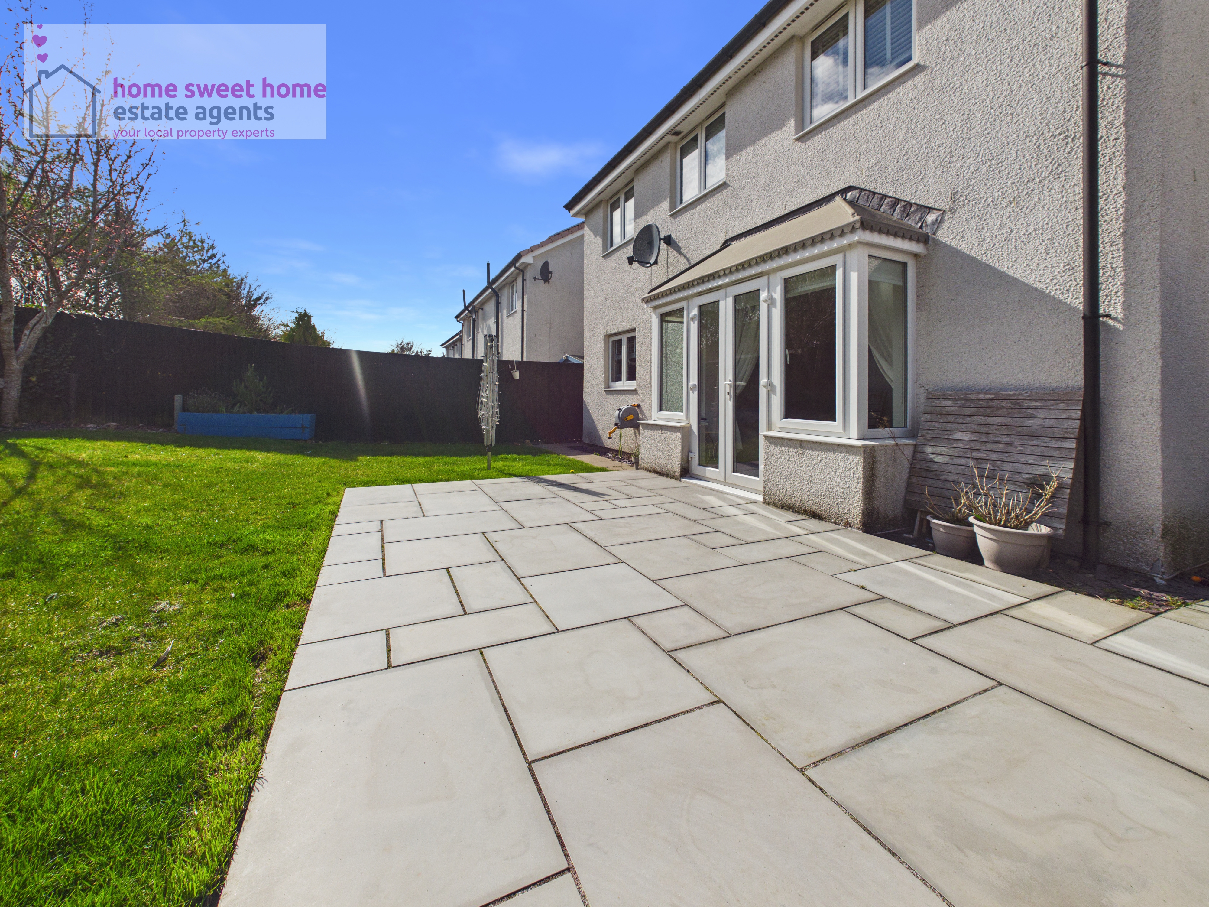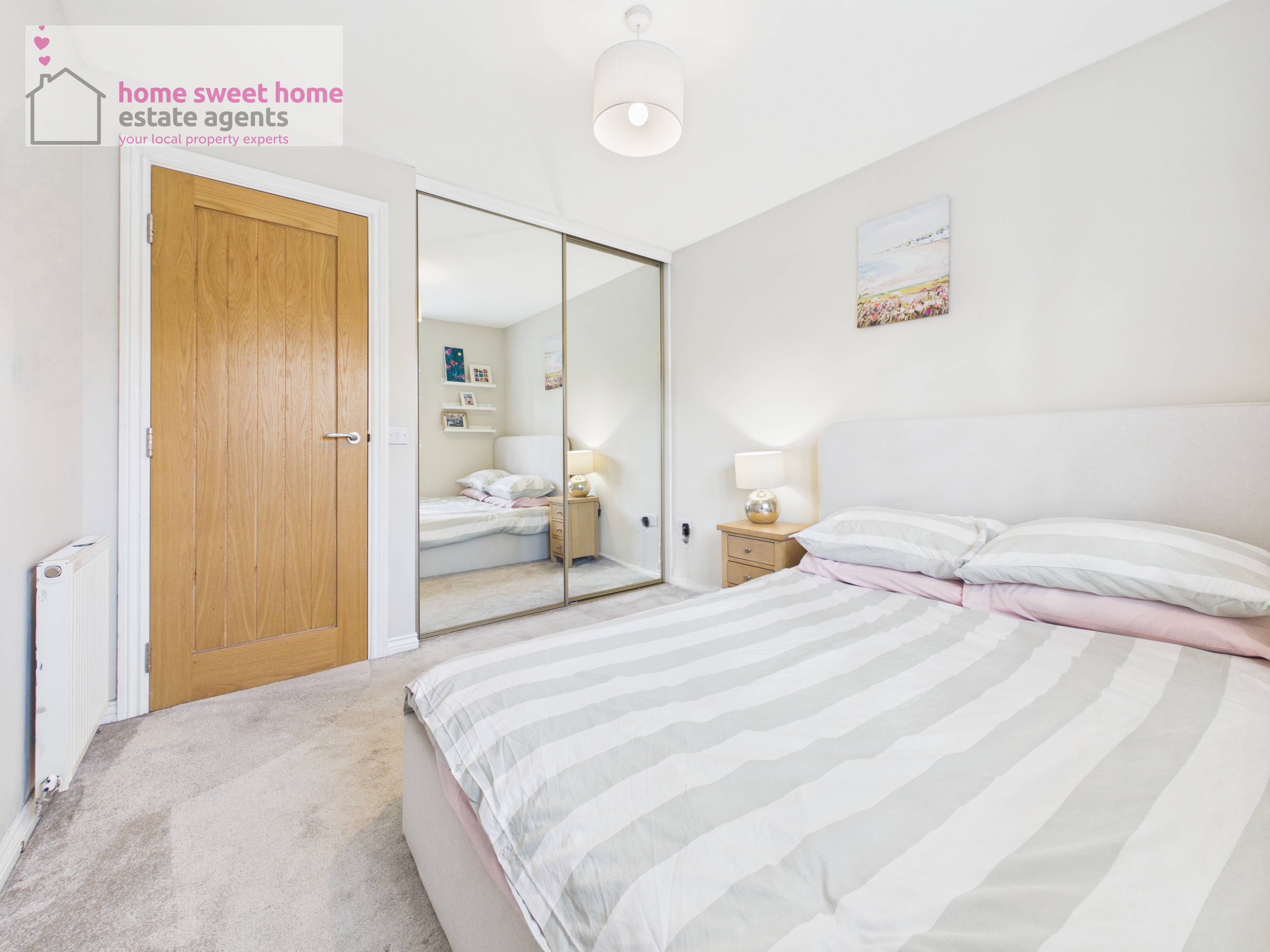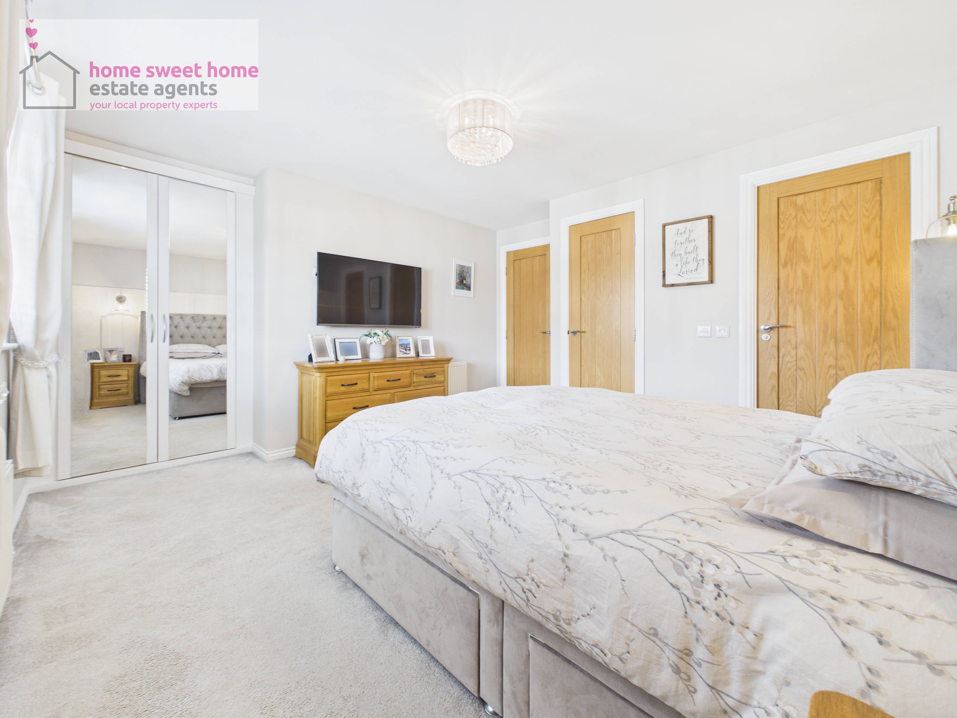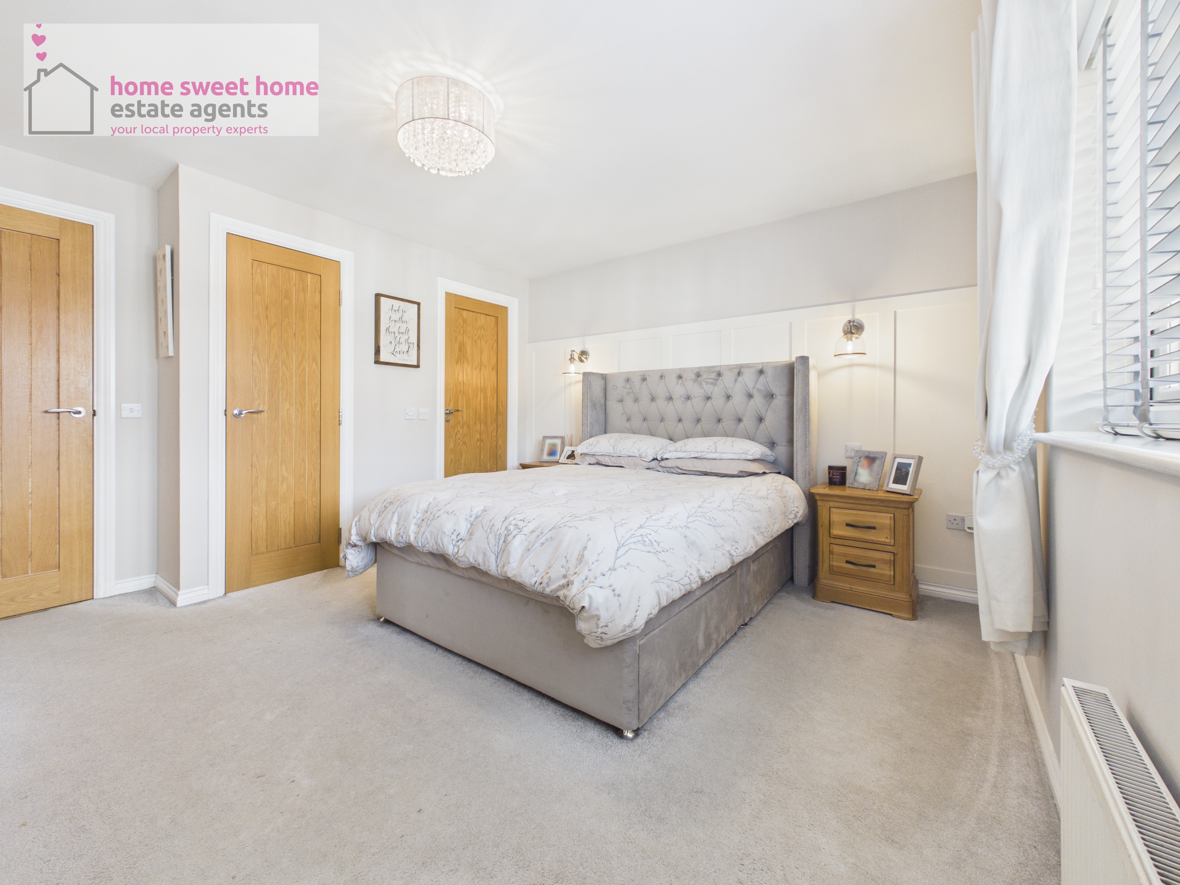Upstairs, there are four spacious bedrooms, all benefiting from fitted storage, giving the home both comfort and convenience for growing families. Outside, the property enjoys a private rear garden, ideal for children, outdoor dining, or simply enjoying the warmer months.