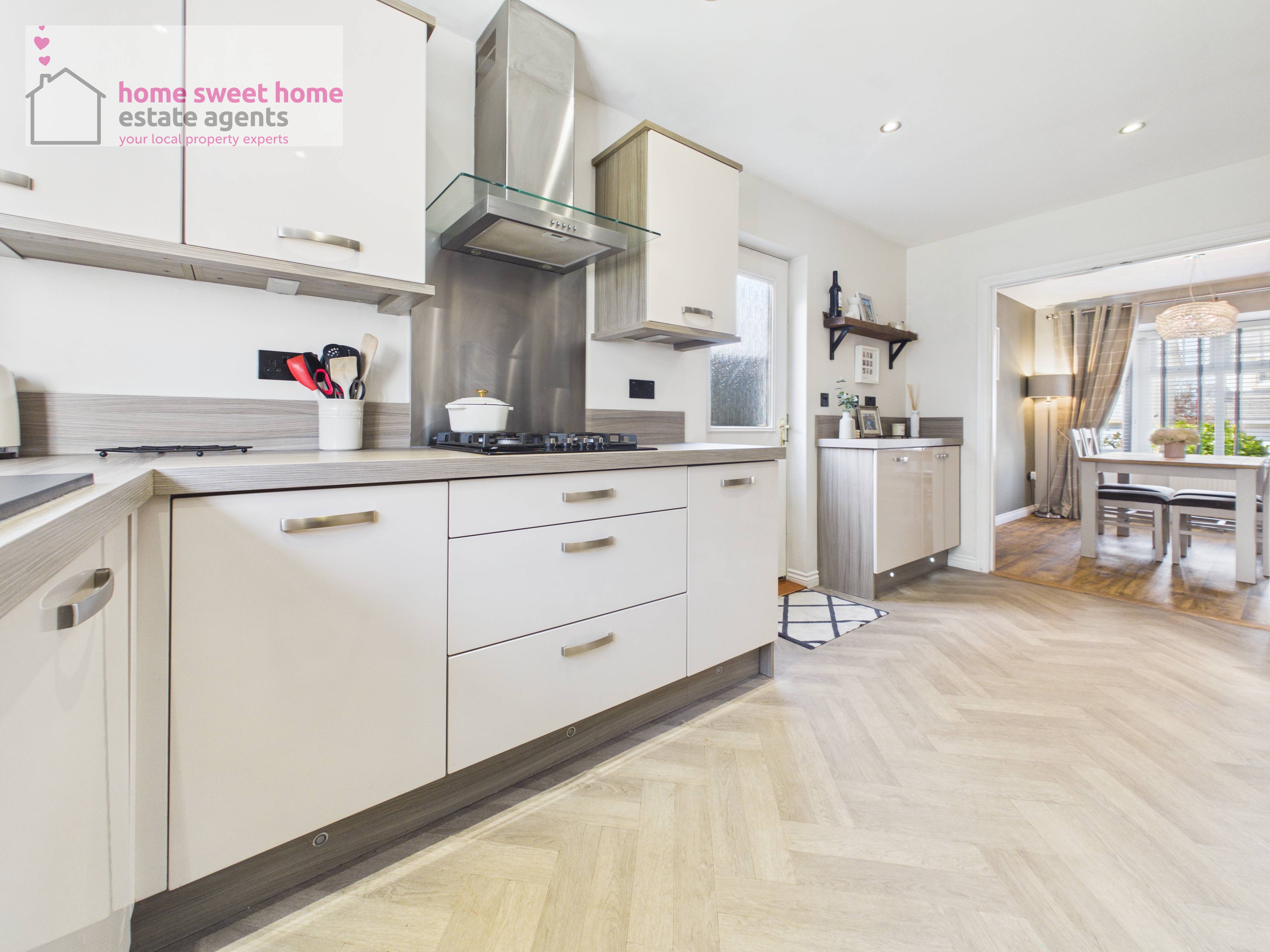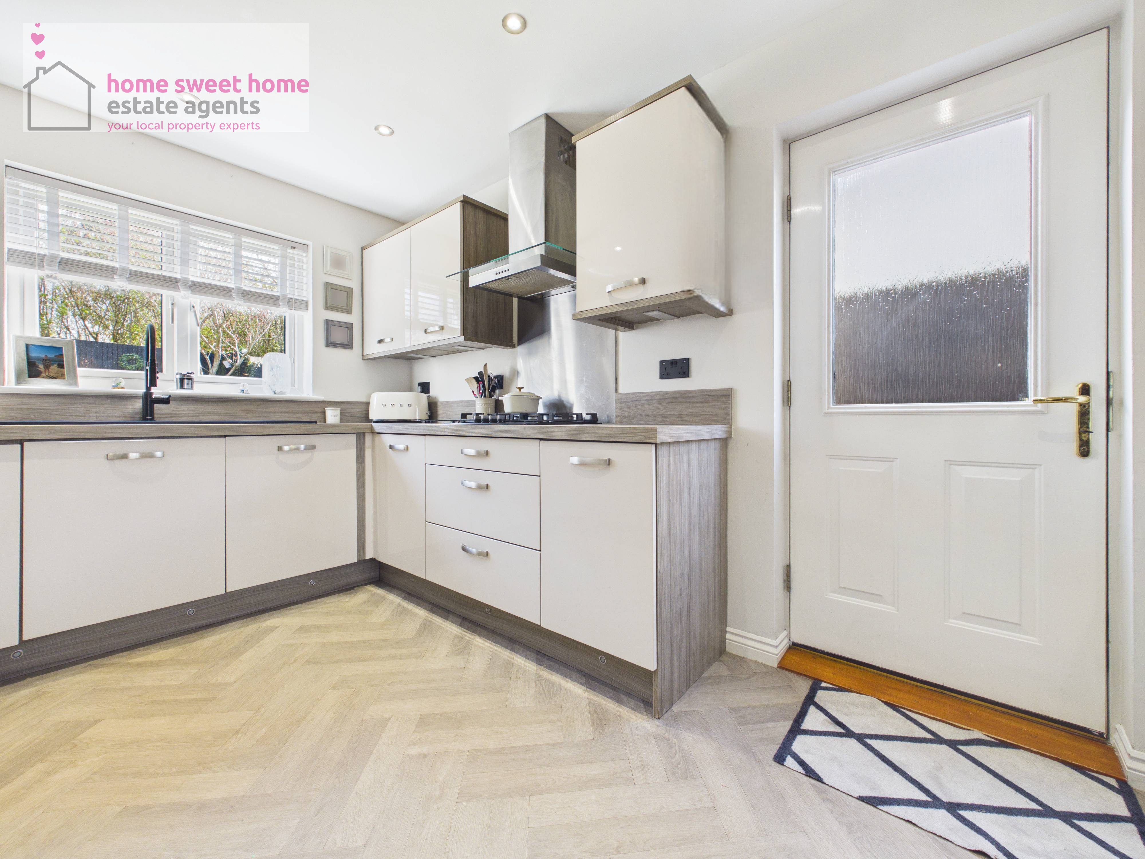 All four bedrooms are well-proportioned and benefit from fitted storage, while outside the home enjoys a rear garden, single garage, and a driveway accommodating two vehicles. Set in a fantastic family-friendly location, this attractive property combines space, comfort, and practicality, making it an ideal place to call home.