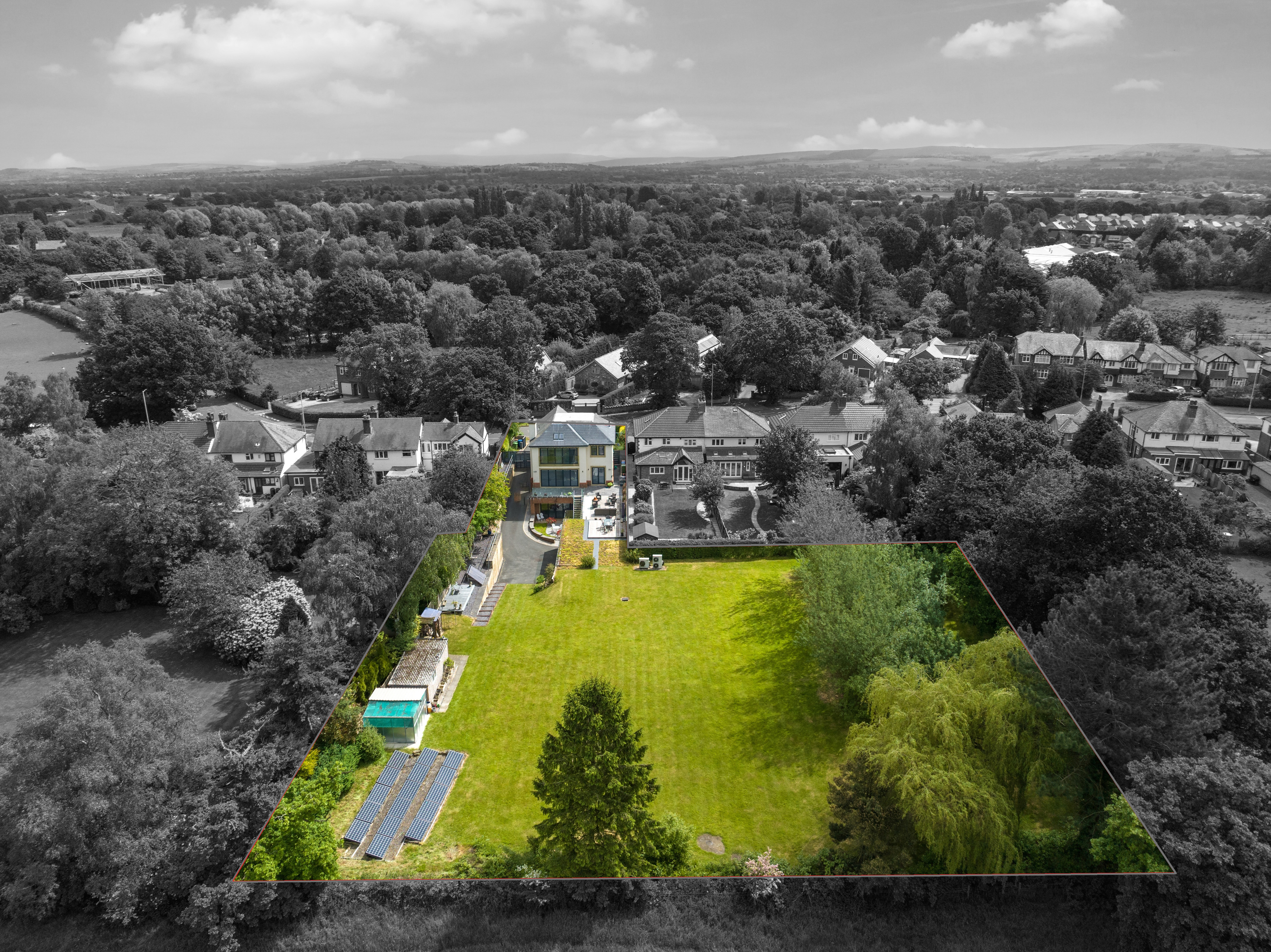 Woodford is a sought-after location and always has been, but incredible home is tucked away in a rare and rural position cocooned by the English countryside yet remaining wonderfully connected. You’re just minutes from the A555, making Manchester Airport easily accessible, and only a short drive from Manchester city centre itself. Bramhall village – with its independent shops, eateries, and warm community feel – is within walking distance, and from the footpaths at the rear of the property, you can stroll to Wilmslow without ever setting foot on a main road. There’s even a well-trodden route to the much-loved Davenport Arms pub, a local favourite known for its historic charm and hearty food. For families, the location also puts you close to the community hubs of Avro Golf Club and Woodford Cricket Club – perfect places for children to grow up surrounded by friends and fresh air.