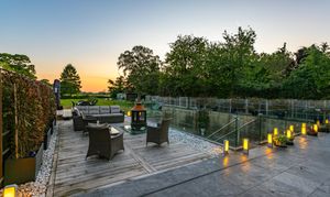 The gardens are a peaceful sanctuary, with lush planting, expansive lawns, and multiple seating areas to soak up the sun from morning through to sunset. And what a view it is. Rolling fields stretch endlessly towards the horizon, with sunsets that paint the skies in rich, fiery tones. It’s this daily spectacle – utterly serene, ever-changing – that the owners say they’ll miss most.