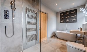 A solid oak bespoke staircase leads to the first floor, where you'll find a beautiful family bathroom with freestanding bath and walk-in shower, plus four further double bedrooms, one of which has a stylish ensuite and another with fitted wardrobes. The property also benefits from a large loft space that has the potential to be converted if further space is required and triple glazed aluminium windows throughout.